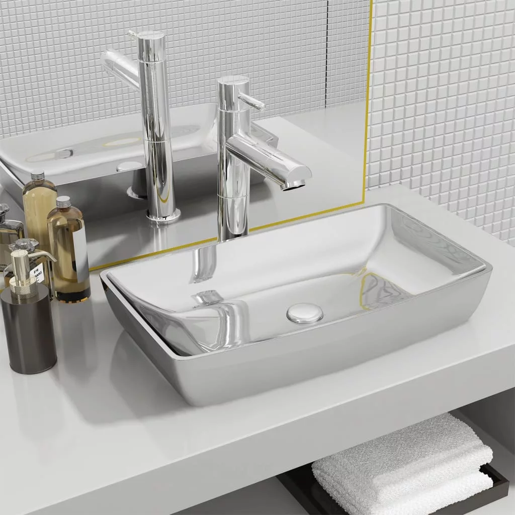 Elegáns kerámiából készült, így ez az négyszög alakú mosdókagyló bármely fürdőszoba, mosókonyha, öltöző vagy pipereszoba sikkes és időtlen kiegészítője lehet.