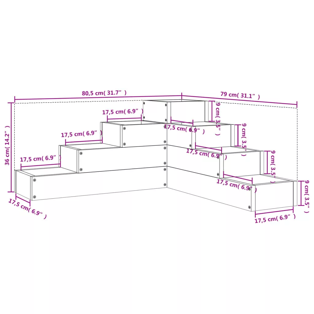 - Sarokkialakítás: Ez a fa virágtartó L-alakú, és elhelyezhető erkélyek, verandák, teraszok, udvarok és egyebek sarkaiban, így a kültéri környezet teljes mértékben kihasználható.