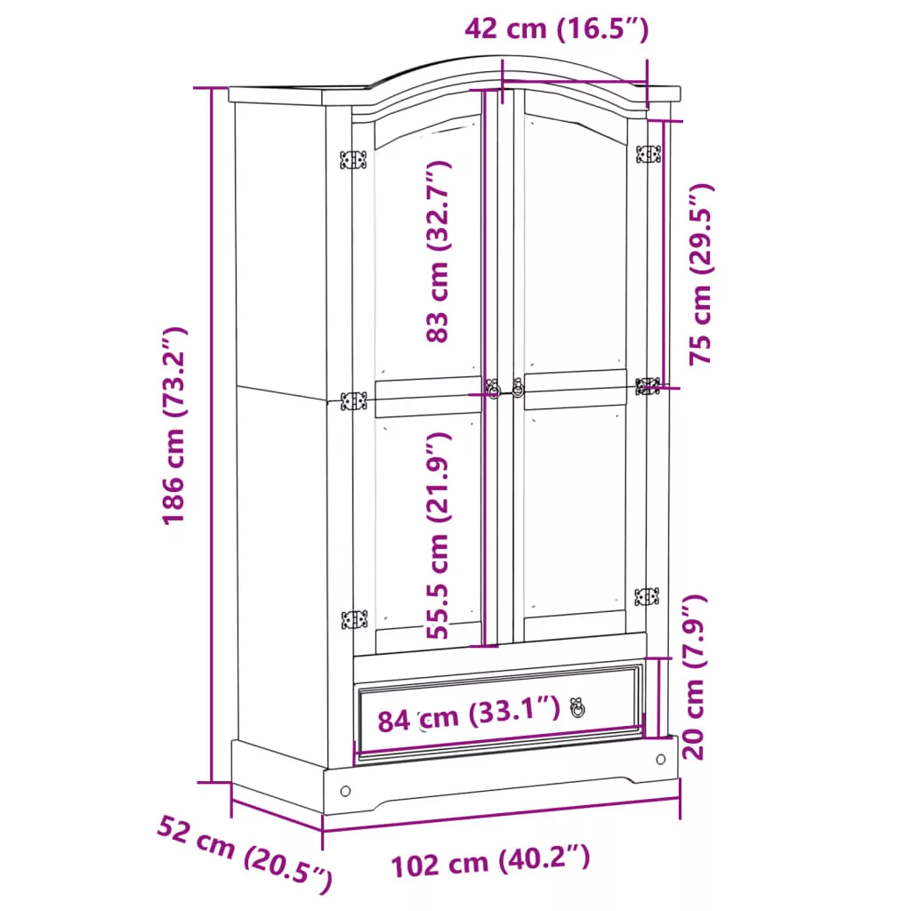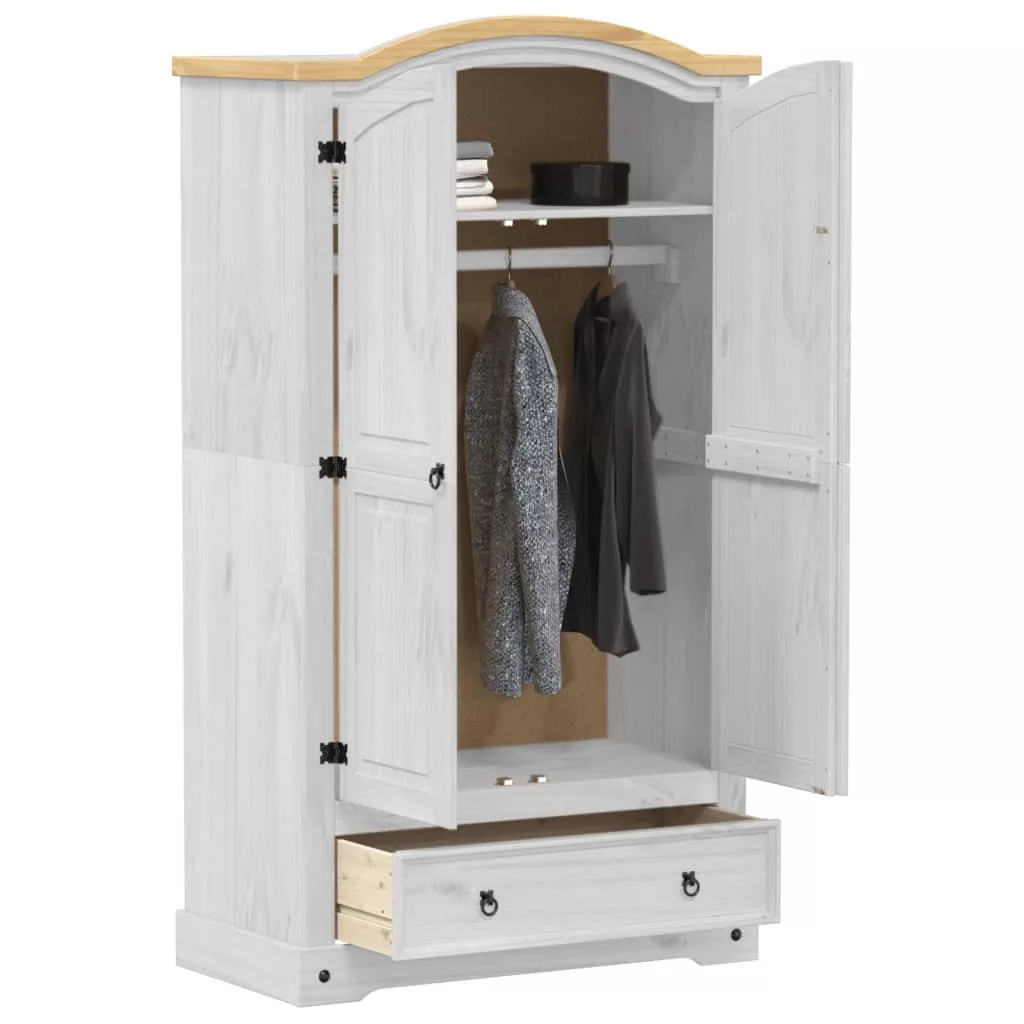 Ez a klasszikus stílusú faszekrény bőséges tárolóhelyet biztosít ruhái, cipői és kiegészítői rendezett tárolásához.