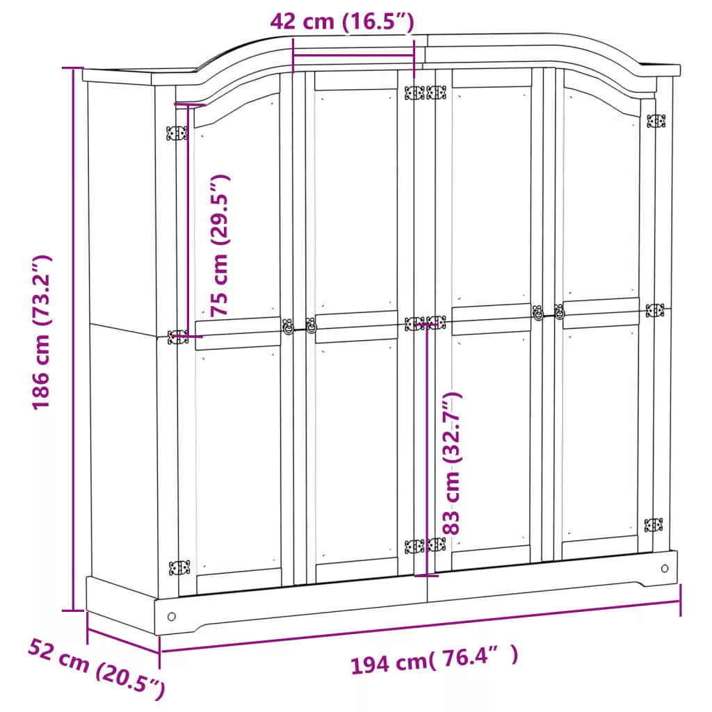 - Mérete: 194 x 52 x 186 cm (Szé x Mé x Ma)