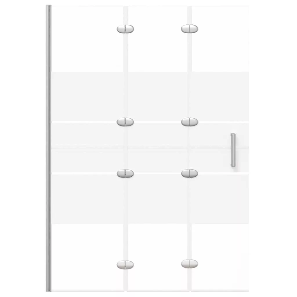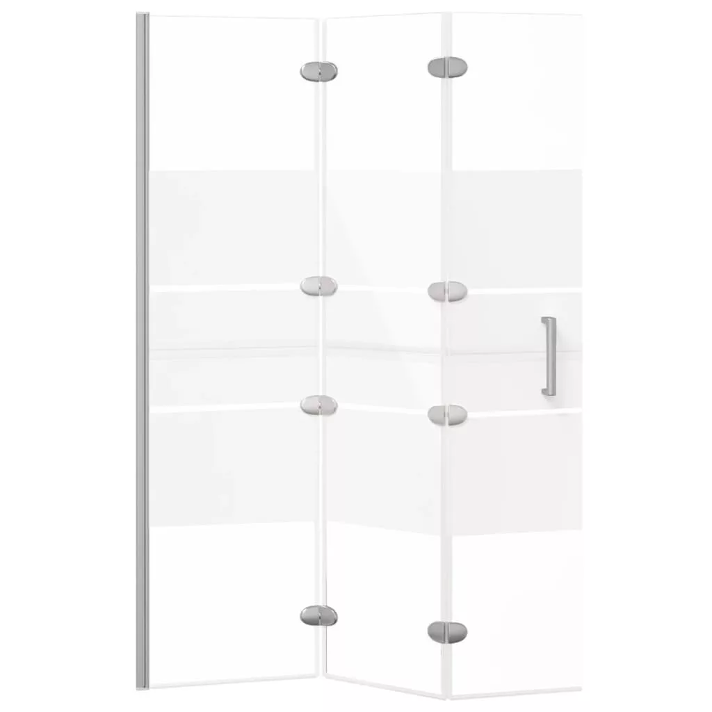 Az alumíniumkeret és az ESG-ből (egyrétegű biztonsági üveg) készült panelek letisztult megjelenésűek, és biztonságot nyújtanak a zuhany alatt. Emellett ez a zuhanyajtó összecsukható kialakítású a zuhanykabinba történő könnyű belépés és az onnan való kilépés érdekében.