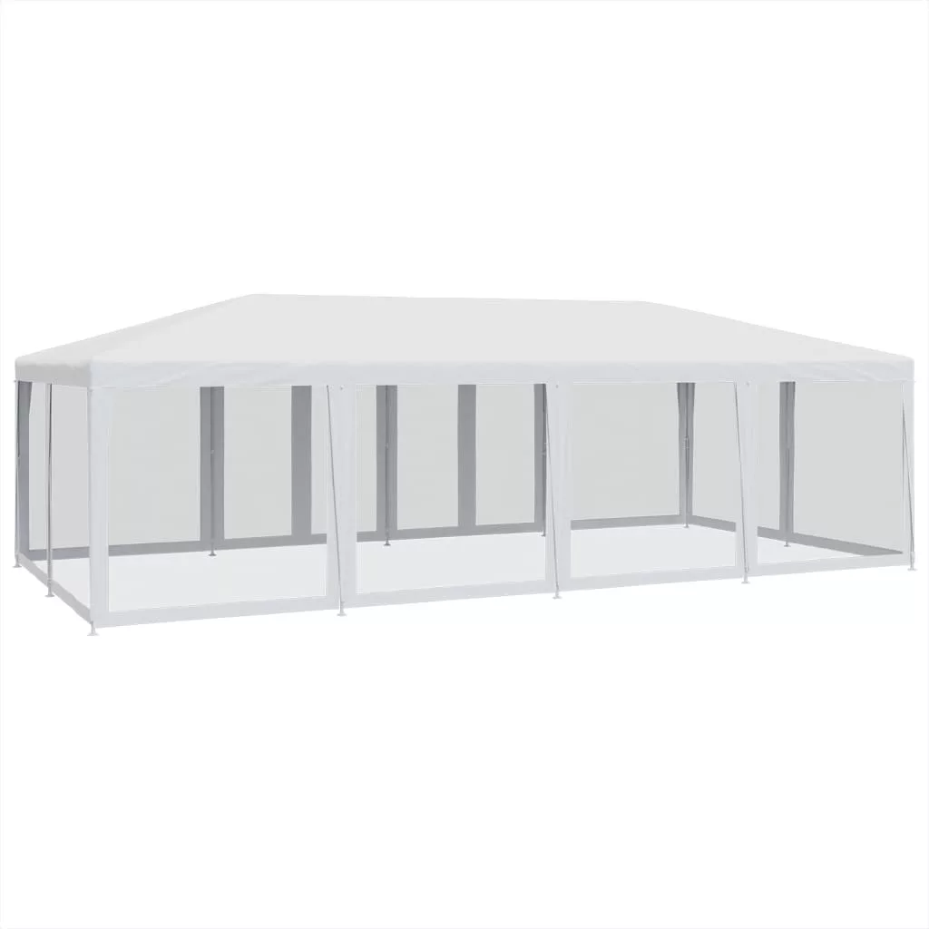 - Prémium minőségű anyag: Ez a pavilonsátor nagy sűrűségű polietilénből (HDPE) készült, amely megvéd a közvetlen napfénytől és elegendő szelet enged át. A HDPE speciálisan kezelt anyag, így vízálló is.