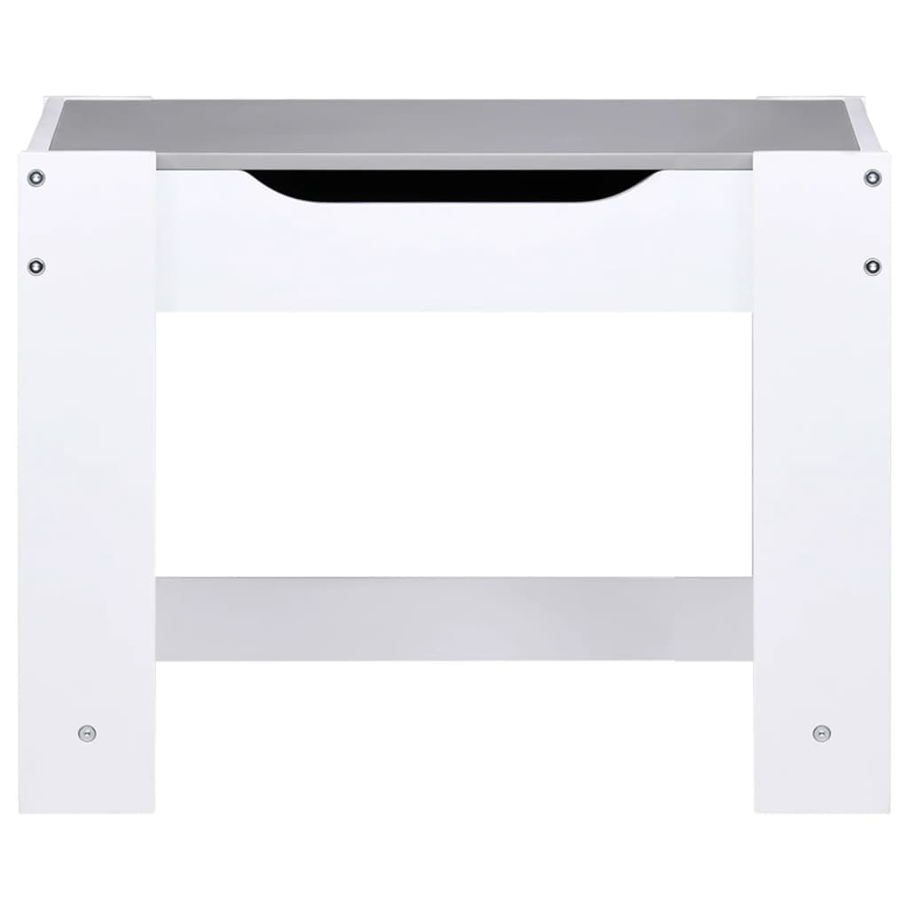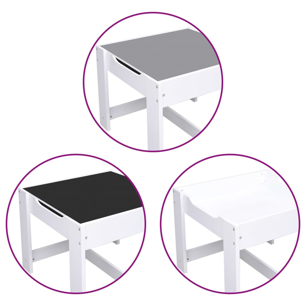 Ez a készlet MDF-lapokból készült, finoman lekerekített stabil sarkokkal rendelkezik, amelyeknek köszönhetően nem kell aggódnia, hogy a gyerekek megsértik magukat az éles sarkokkal és élekkel. A többfunkciós asztal kétoldalas, levehető asztallappal rendelkezik. Az egyik oldala egy írótábla, a másik oldala pedig egy krétatábla. Beépített játszófelületet tartalmaz, és tárolórekeszként is szolgál, így tökéletesen alkalmas az étkezésekhez, a játékhoz és a játékok tárolásához, valamint segít megakadályozni, hogy a játékok, italok és rágcsálnivalók lepottyanjanak az asztalról.