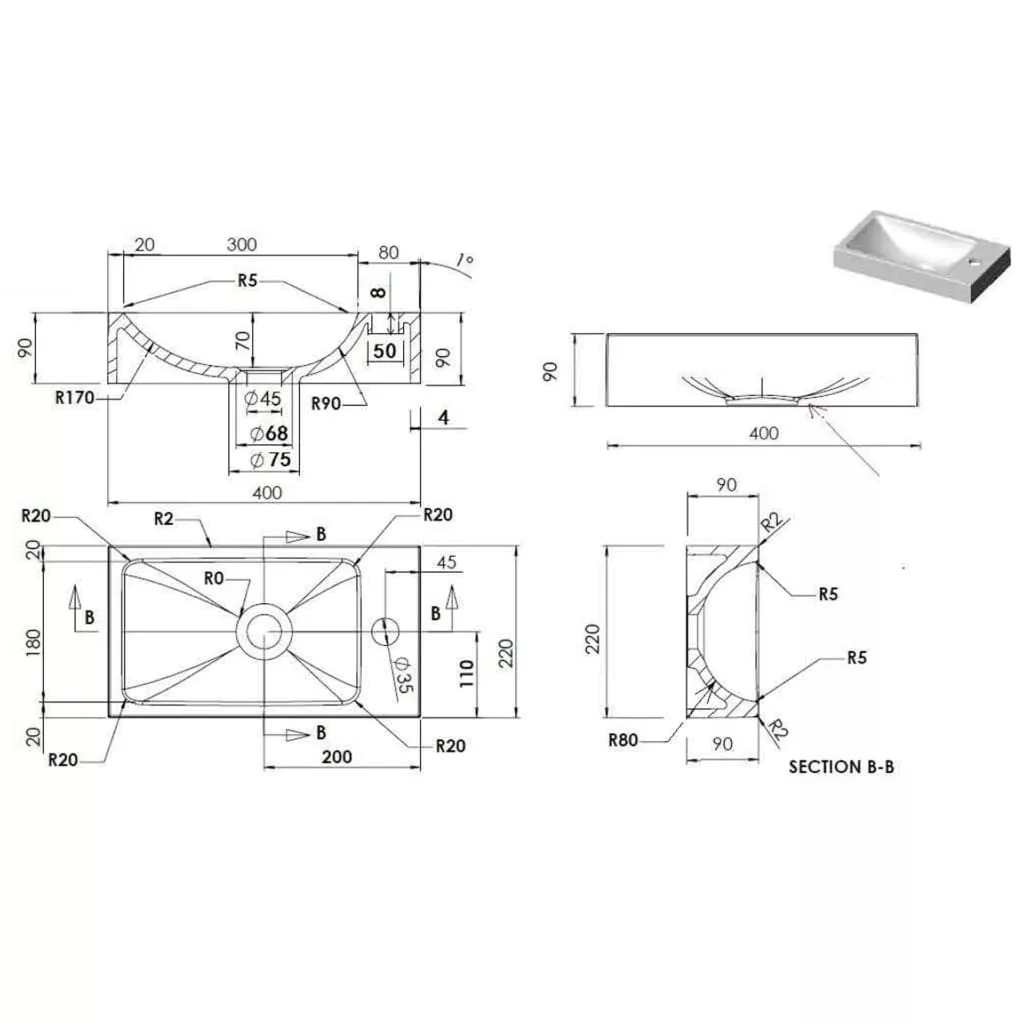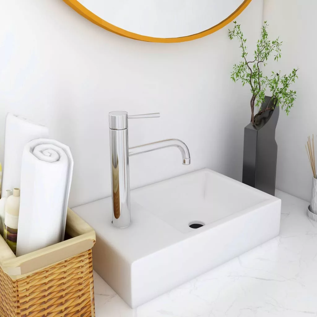 Ez a csaptelepfurattal ellátott mosdókagyló fürdőszobája, mosdója vagy pipereszobája tökéletes kiegészítője lesz.