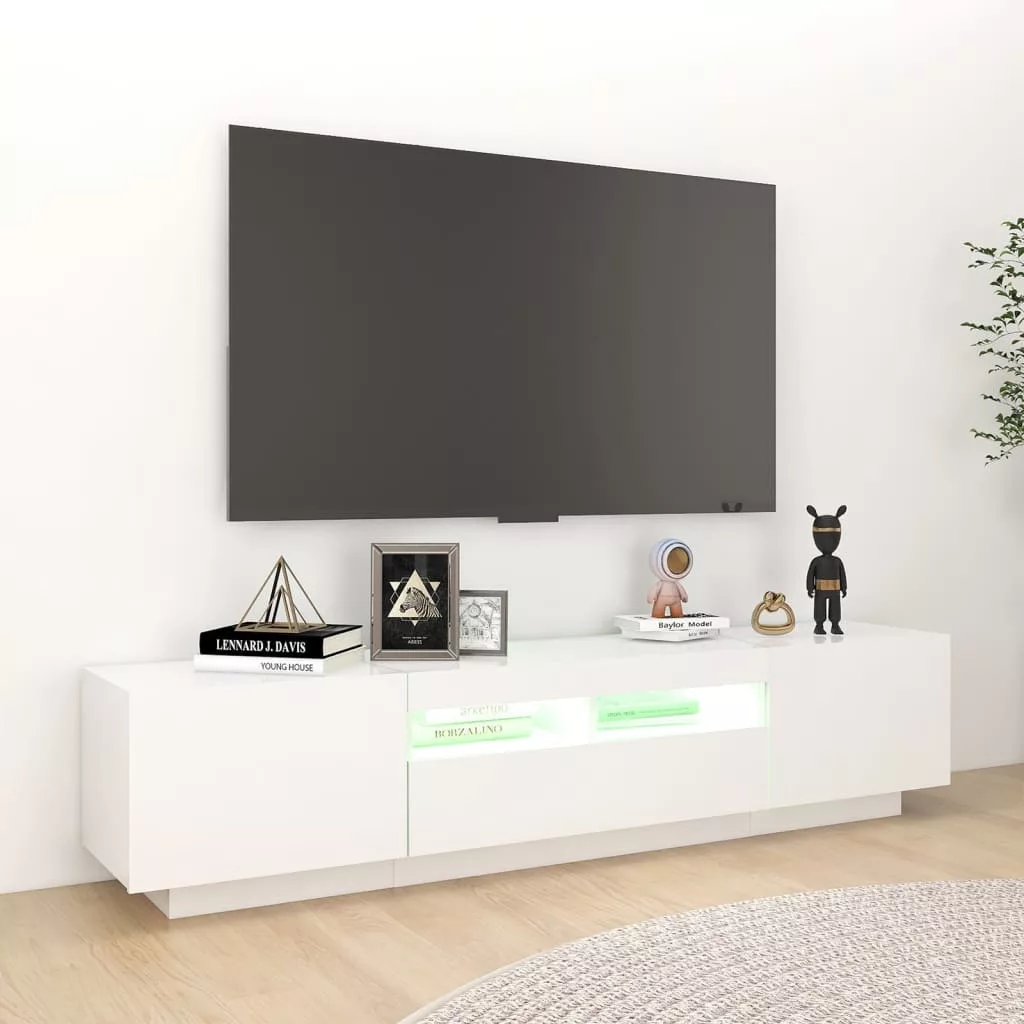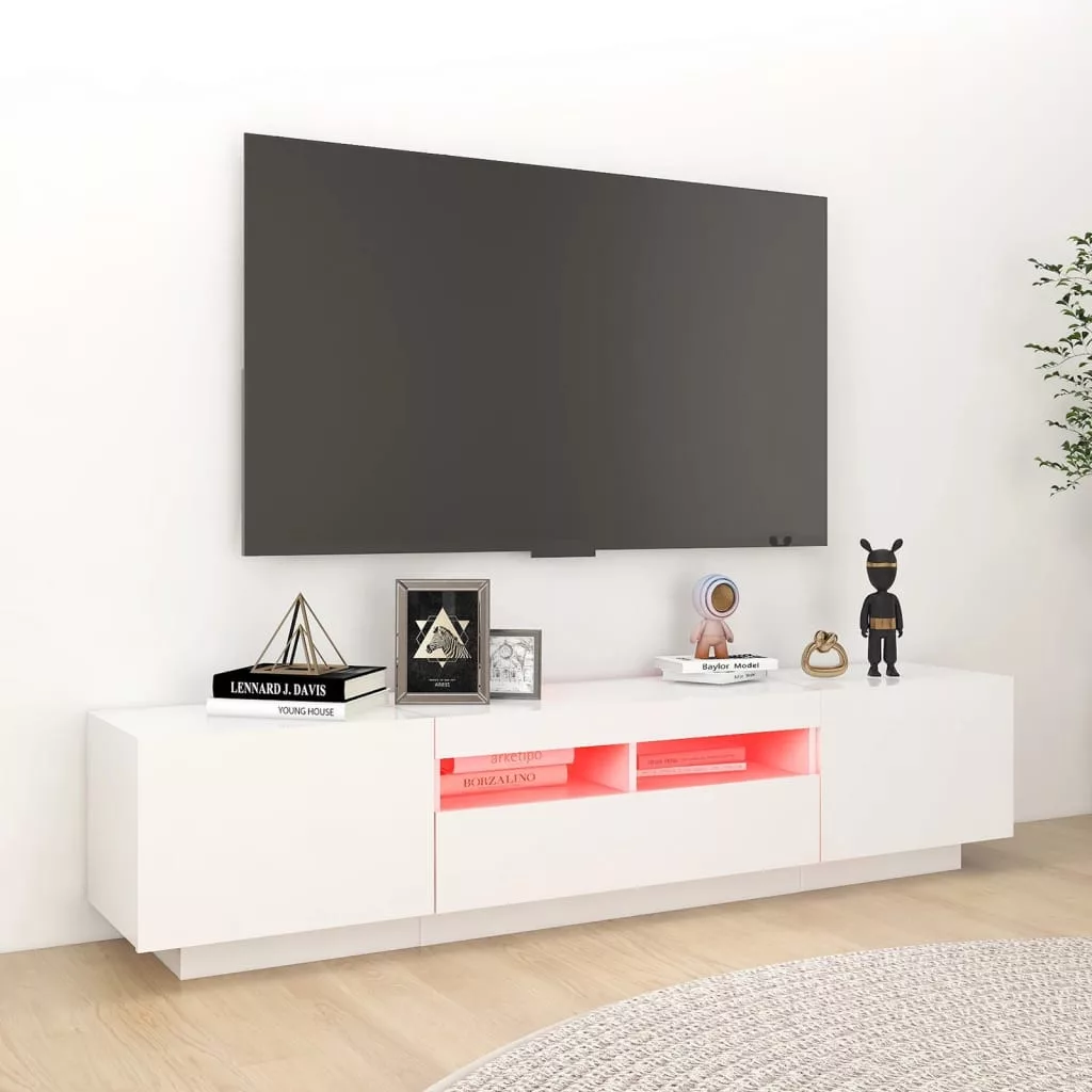 Ez a stílusos, mégis praktikus kialakítású LED-lámpákkal ellátott TV-szekrény minden bizonnyal szobája középpontjává fog válni.