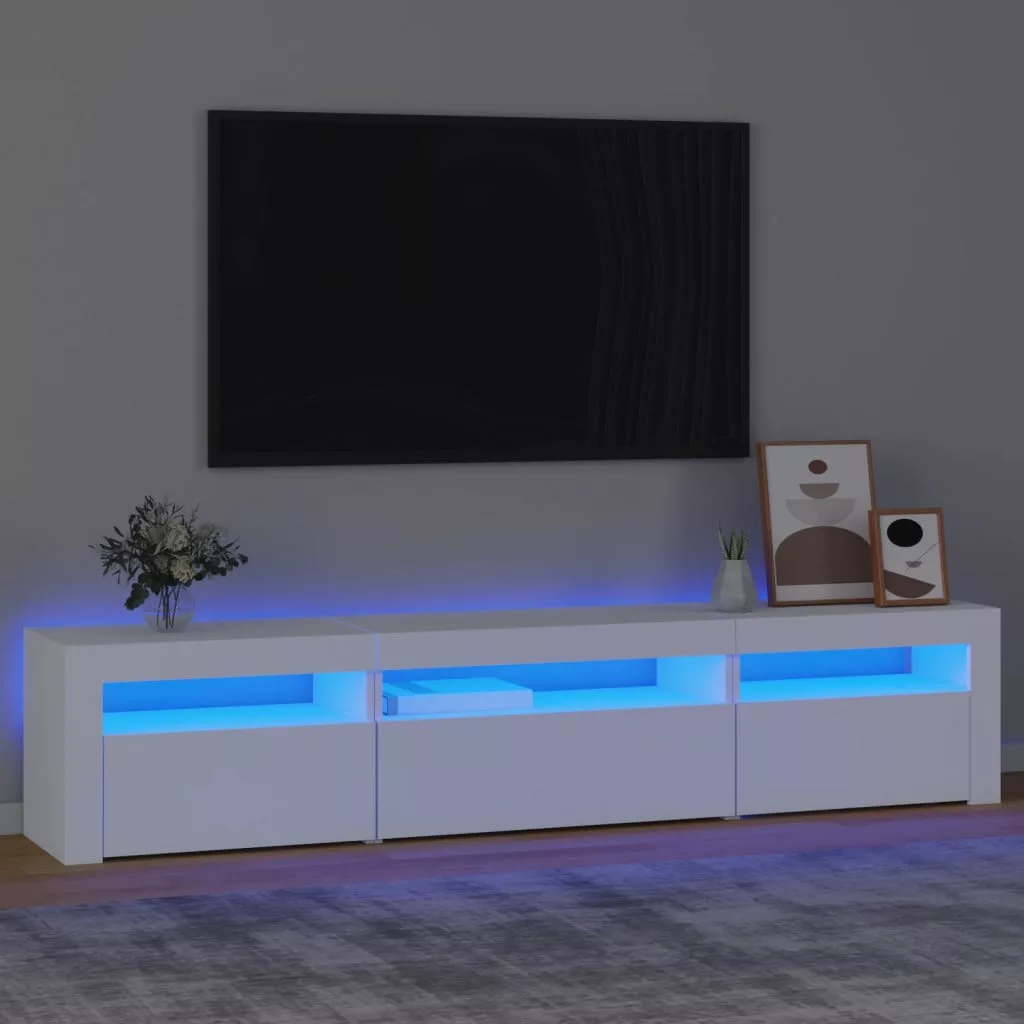 Ez a stílusos, mégis praktikus kialakítású LED-lámpákkal ellátott TV-szekrény minden bizonnyal szobája középpontjává fog válni.
