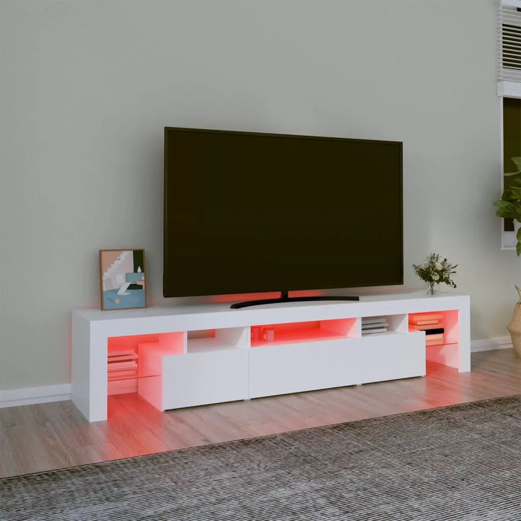 Ez a stílusos, mégis praktikus kialakítású LED-lámpákkal ellátott TV-szekrény minden bizonnyal szobája középpontjává fog válni.
