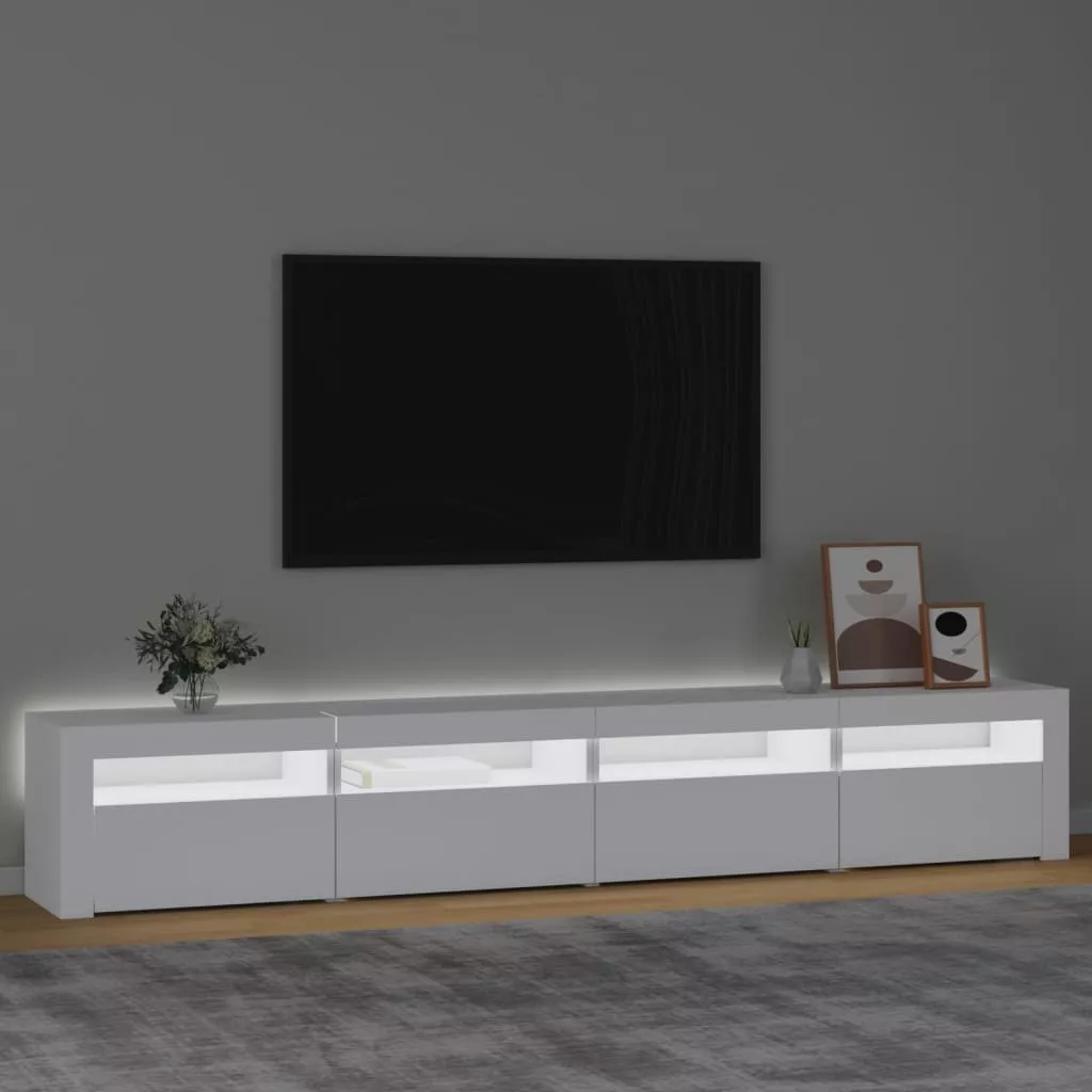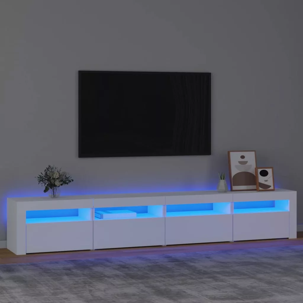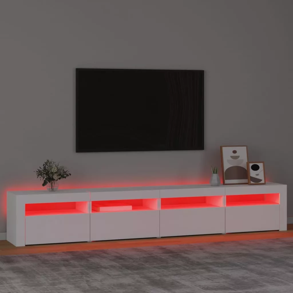 Ez a stílusos, mégis praktikus kialakítású LED-lámpákkal ellátott TV-szekrény minden bizonnyal szobája középpontjává fog válni.