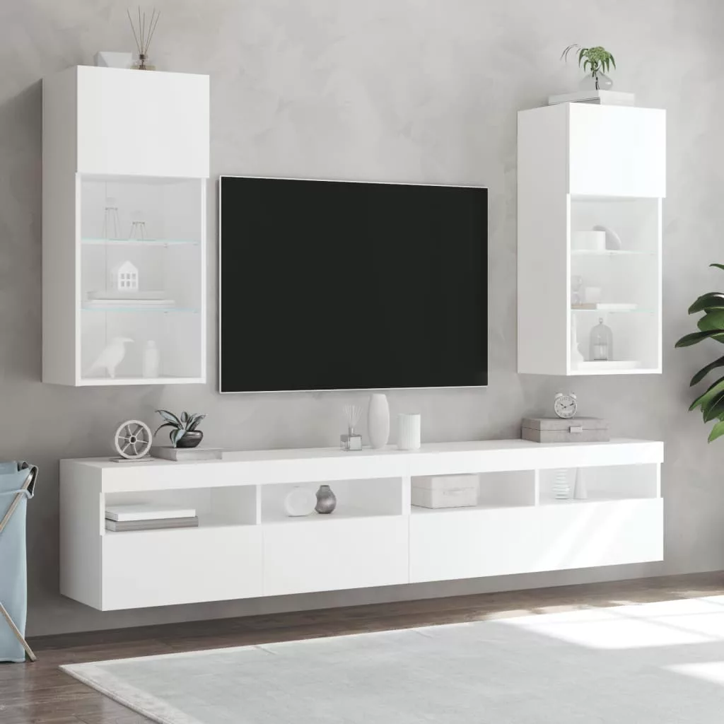 Ez a stílusos, mégis praktikus kialakítású LED-lámpákkal ellátott TV-szekrény minden bizonnyal szobája középpontjává fog válni.