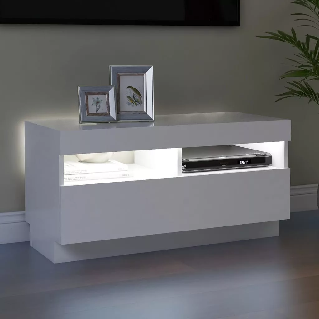 Ez a stílusos, mégis praktikus kialakítású LED-lámpákkal ellátott TV-szekrény minden bizonnyal szobája középpontjává fog válni.