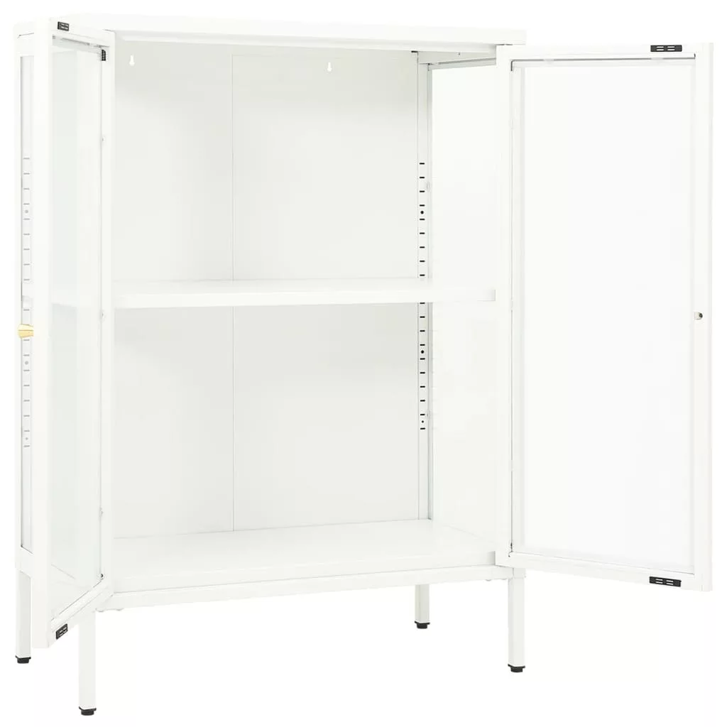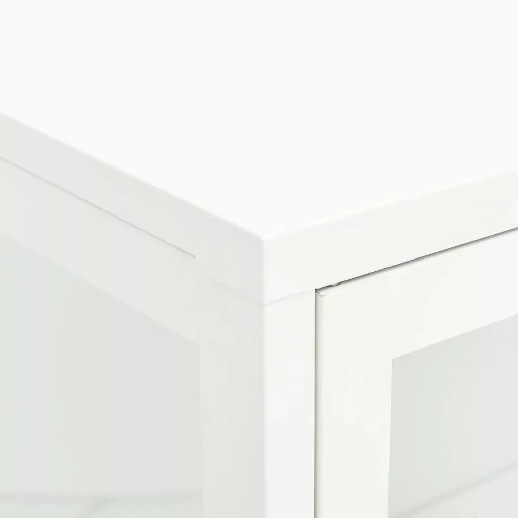 Az acélból készült tárolószekrény masszív és strapabíró, így évekig használható. A szekrény üvegajtaja mögötti rekeszek bőséges helyet kínálnak könyvek, folyóiratok, DVD-k, vázák és egyéb dísztárgyak kézközelben történő rendezett tárolására és megjelenítésére. Emellett a polc különböző magasságokban helyezhető el a tárolóhely méretének megváltoztatásához. A lábak könnyen beállíthatóak a kívánt magasságba, és biztosítják a kisszekrény stabilitását. A szekrény nedves ruhával könnyen tisztítható.