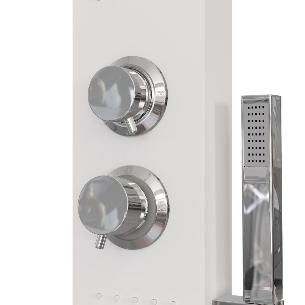 Ez a zuhanytorony tartós alumíniumból készült, melynek gyönyörű és szögletes tervezése van. 4 funkcióval van ellátva: esőztető, vízesés, masszázs és kézi tusolófej, melyek könnyedén kiválaszthatóak a forgatható gomb segítségével.