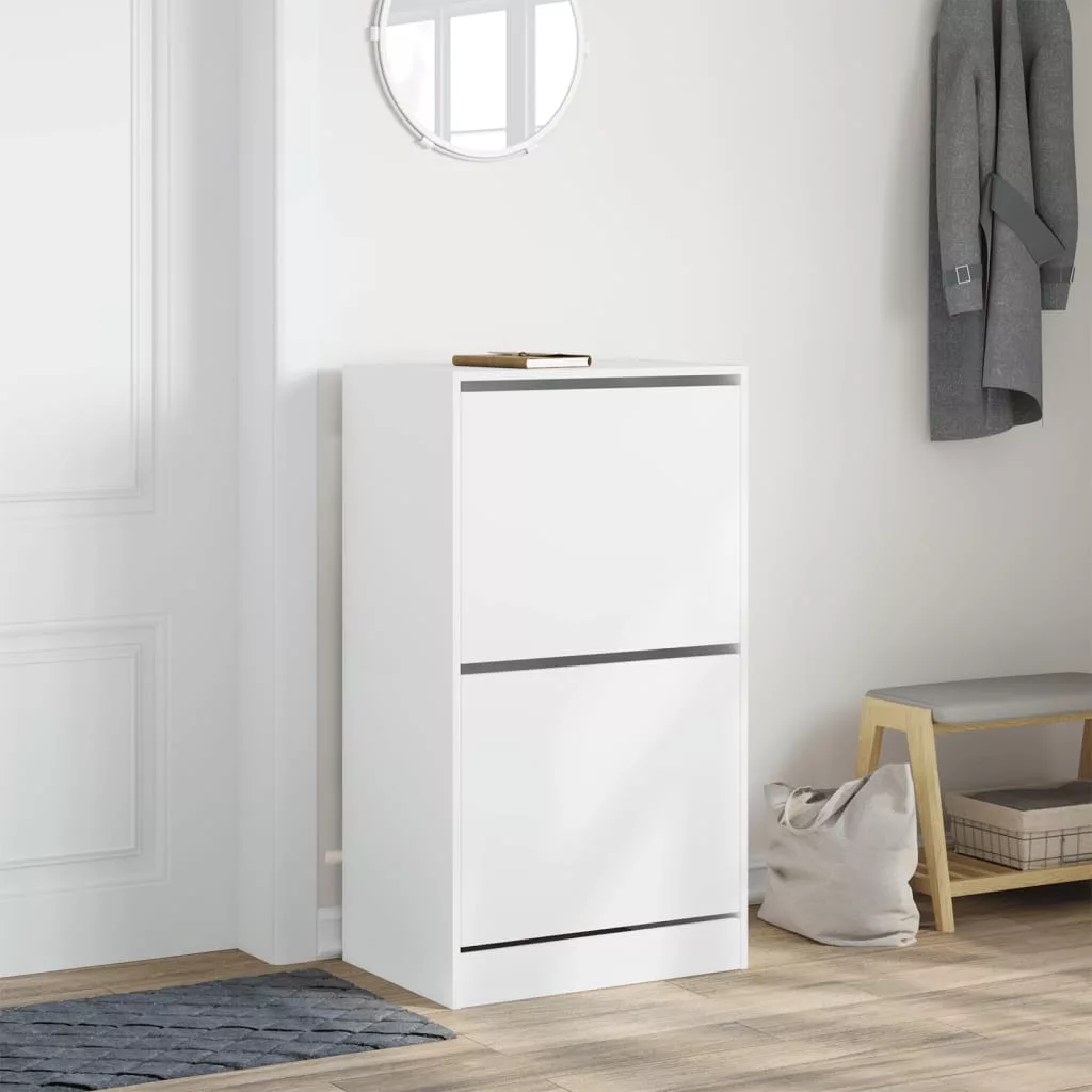 - Bőséges tárolóhely: A cipőtároló szekrényben kihajtható fiókok találhatók, amelyek elrejtik a cipőket, hogy tiszta és rendetlenségmentes teret biztosítson.