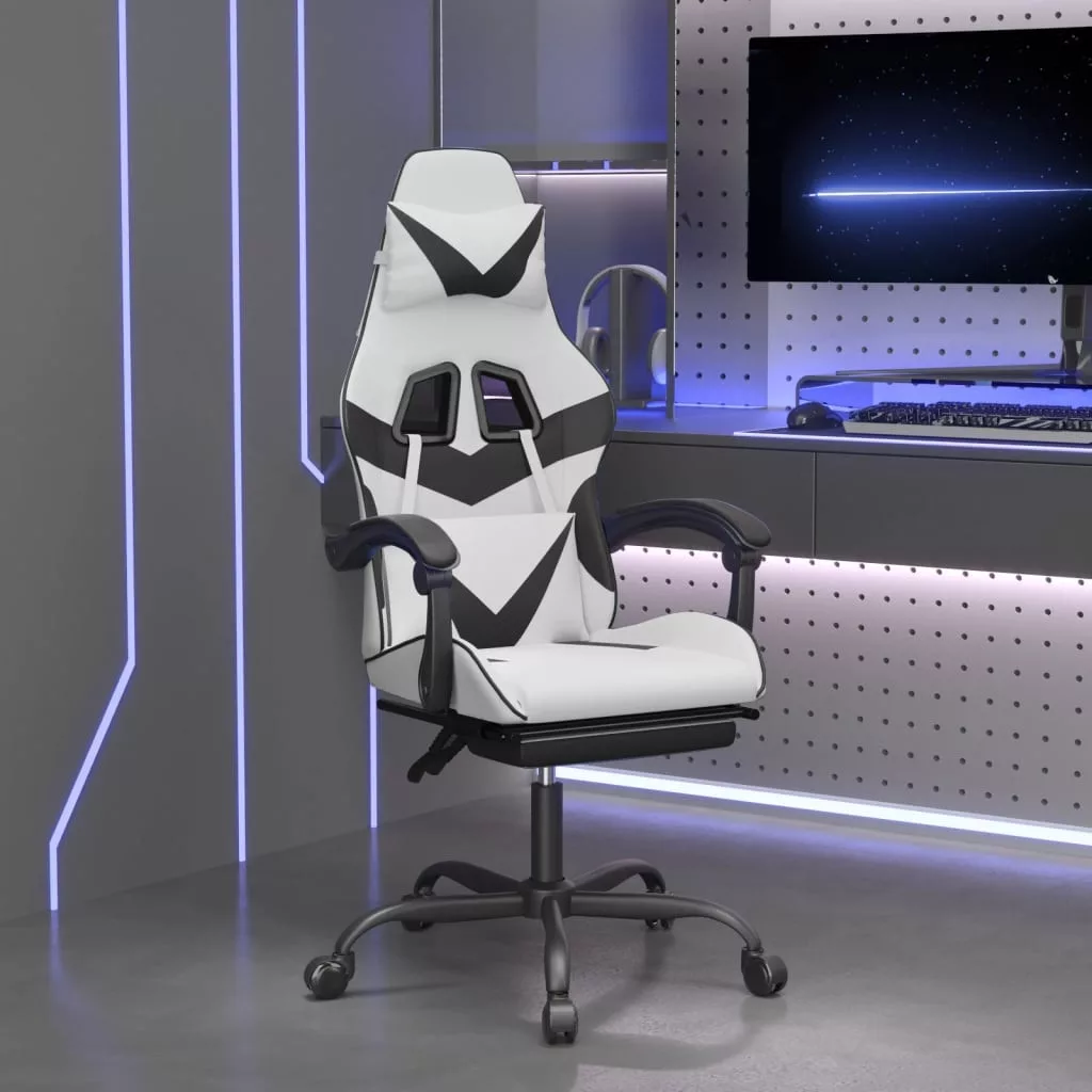 vidaXL fehér és fekete műbőr játékszék lábtartóval