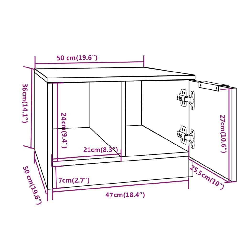 - Mérete: 50 x 50 x 36 cm (Ho x Szé x Ma)