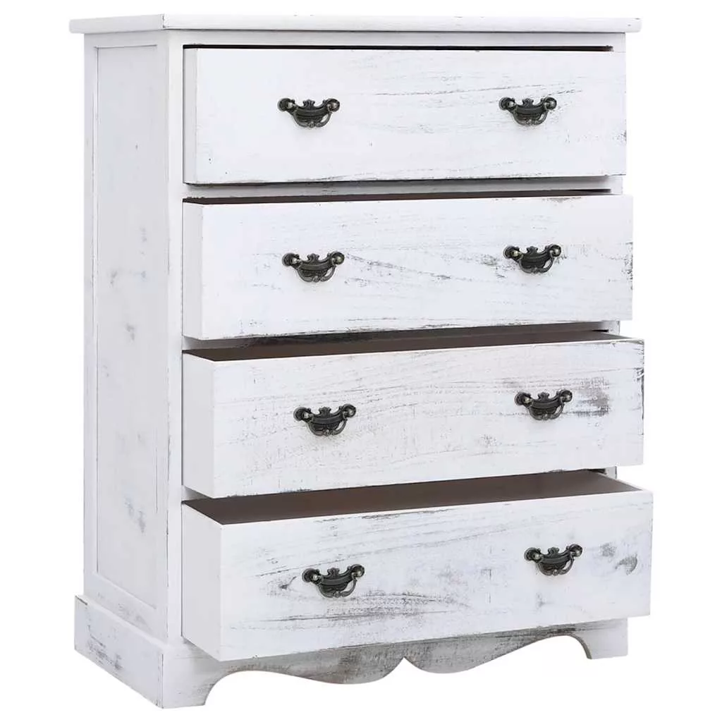 A szekrény minőségi császárfából, nyárfából és MDF-lapból készült, így rendkívül stabil és tartós. 4 fiókkal lett ellátva, melyek bőséges helyet kínálnak különböző tárgyak, például kulcsok, füzetek, könyvek, magazinok és egyéb apróságok tárolásához.