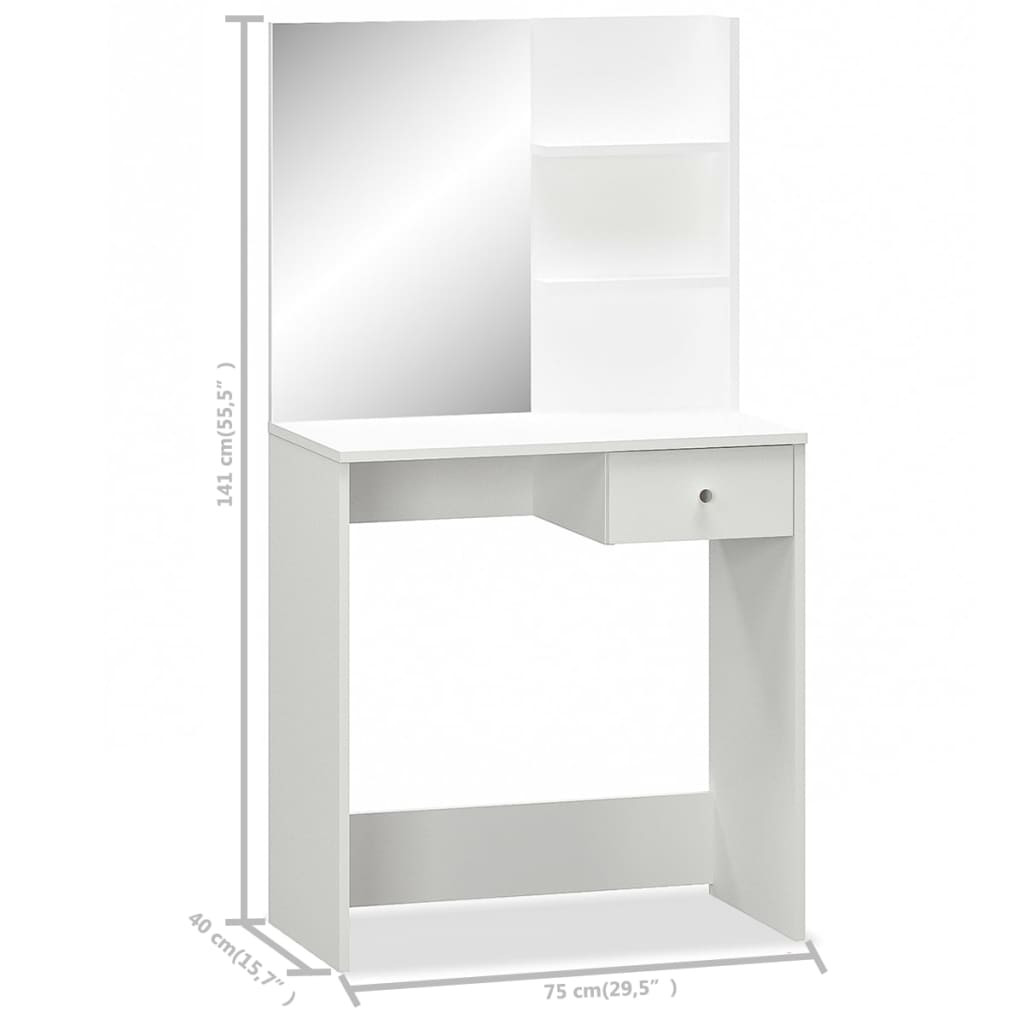 Az öltözőasztal forgácslemezből PVC sarkokból készült, így stabil és strapabíró. Tágas fiókjának és polcrendszerének köszönhetően elegendő tárolóhely áll rendelkezésre benne az összes szépészeti terméke, illetve minden olyasmi számára, amit elérhető közelségben szeretne tudni és így csökkenthti a hálószobában felhalmozódó felfordulást.