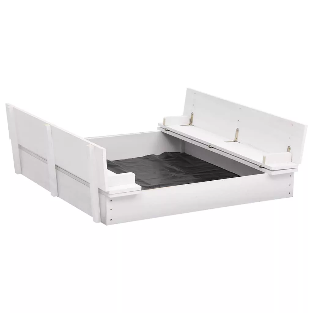 A homokozó sokoldalú fedele kihajtható, így 2 padot lehet létrehozni, amelyeken a gyerekek ülhetnek. Ezenkívül a csomag egy nejlon sátoraljat is tartalmaz, hogy a homokozót megóvja a gyomnövényzettől, a rovaroktól és az állatoktól. A fenyőfa homokozó szilárd szerkezetű. Hagyja gyermekeit órákon át kreatívan játszani ebben a fa homokozóban!