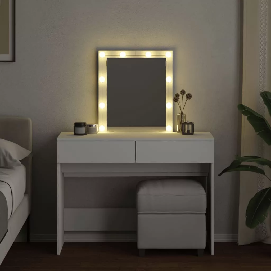 - LED-világítás: A pipereasztal USB-s LED-izzókkal lett ellátva, amelyek egyszerűen átkapcsolhatók melegről hideg fehér fényre. A tükör körüli LED-izzók az Ön szépségét is megvilágítják.