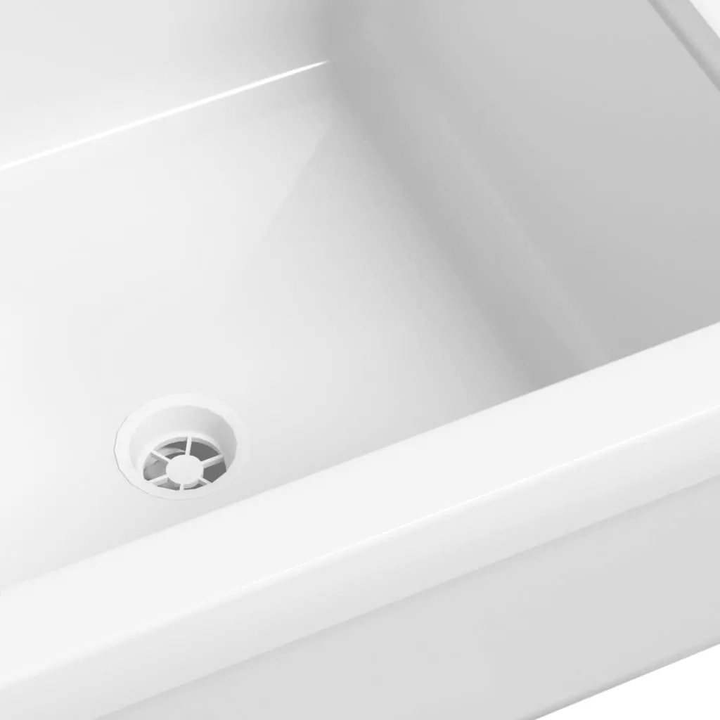 - Széleskörű alkalmazás: A mosogató beltéri és kültéri használatra egyaránt alkalmas. Ideális kerti mosogatóként vagy mosogatóként a garázsban.