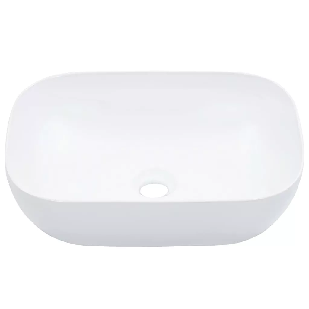 Kerámiából készült, így ez a téglalap alakú mosdókagyló bármely fürdőszoba, mosókonyha, öltöző vagy pipereszoba sikkes és időtlen kiegészítője lehet.