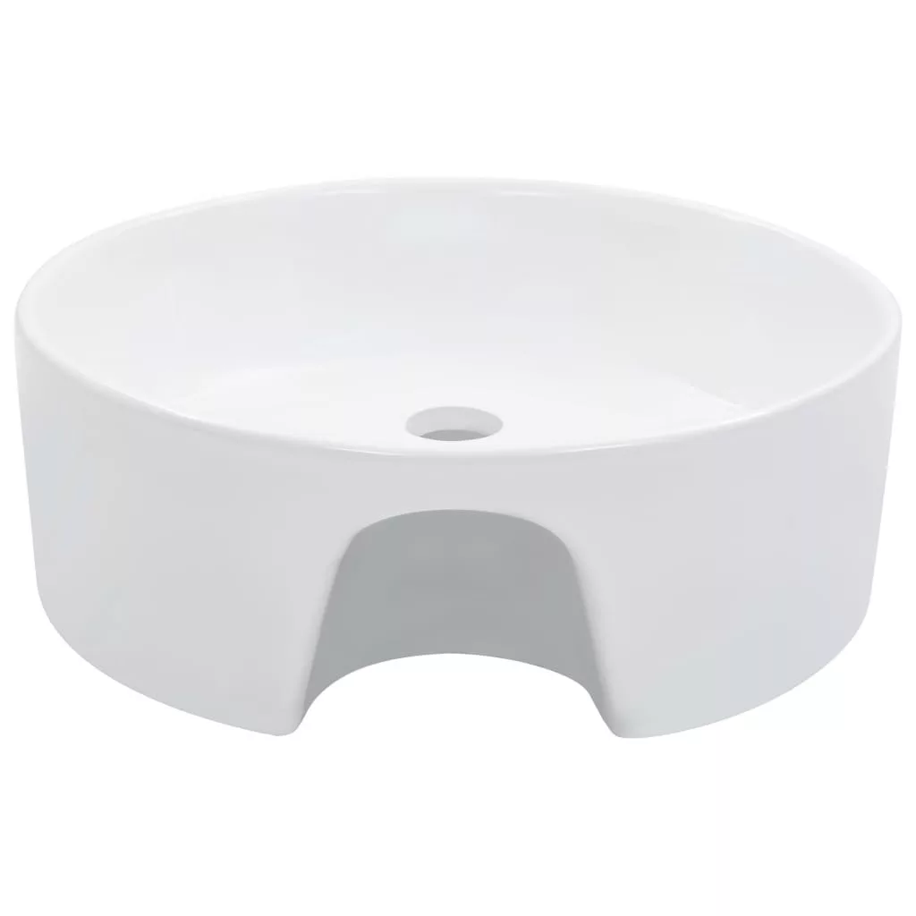 Kerámiából készült, így ez a kerek mosdókagyló bármely fürdőszoba, mosókonyha, öltöző vagy pipereszoba sikkes és időtlen kiegészítője lehet.