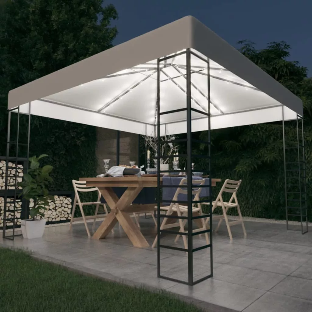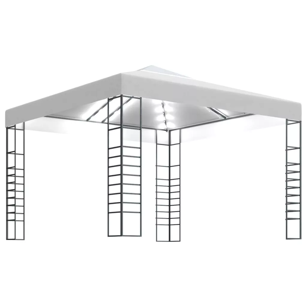 A teljesen acélból készült váz szerkezete erős és stabil, a 100% poliészter tetőponyva pedig poliamid bevonatot kapott, hogy megvédje Önt a nap káros UV-sugaraitól és az esőtől is. Stílusos dupla szellőzős kialakításának köszönhetően szabadon áramlik át rajta levegő, így még nagyobb kényelmet biztosít. A fényfüzér kellemes hangulatot teremt a kertben, amikor lemegy a nap. A fény nem szennyezi a környezetet, mivel napenergia tölti fel a nap folyamán.