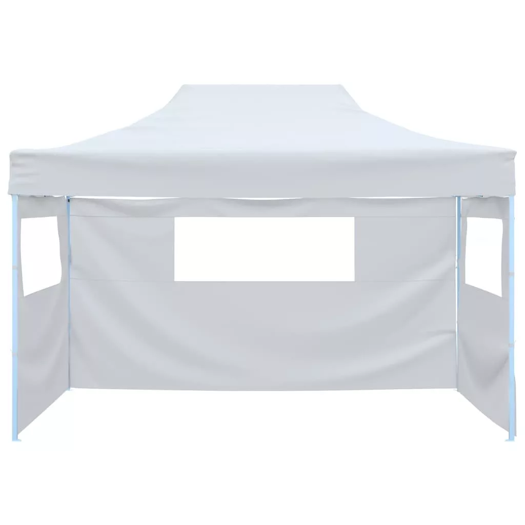 Magas teherbírású, porszórt acélból készült, ez a felhajtható partisátor rendkívül tartós. A tetőborítás PVC bevonatú oxford szövetből készült, 100%-ban vízálló és UV-szűrős. A sátor összecsukható a könnyű tárolás és szállítás érdekében.
