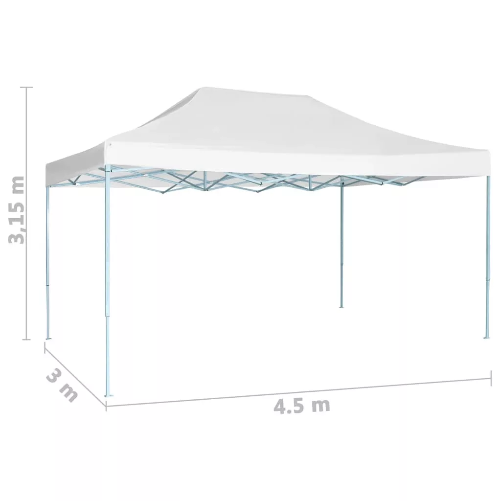 Magas teherbírású, porszórt acélból készült, ez a felhajtható partisátor rendkívül tartós. A tetőborítás PVC bevonatú oxford szövetből készült, 100%-ban vízálló és UV-szűrős. A sátor összecsukható a könnyű tárolás és szállítás érdekében.