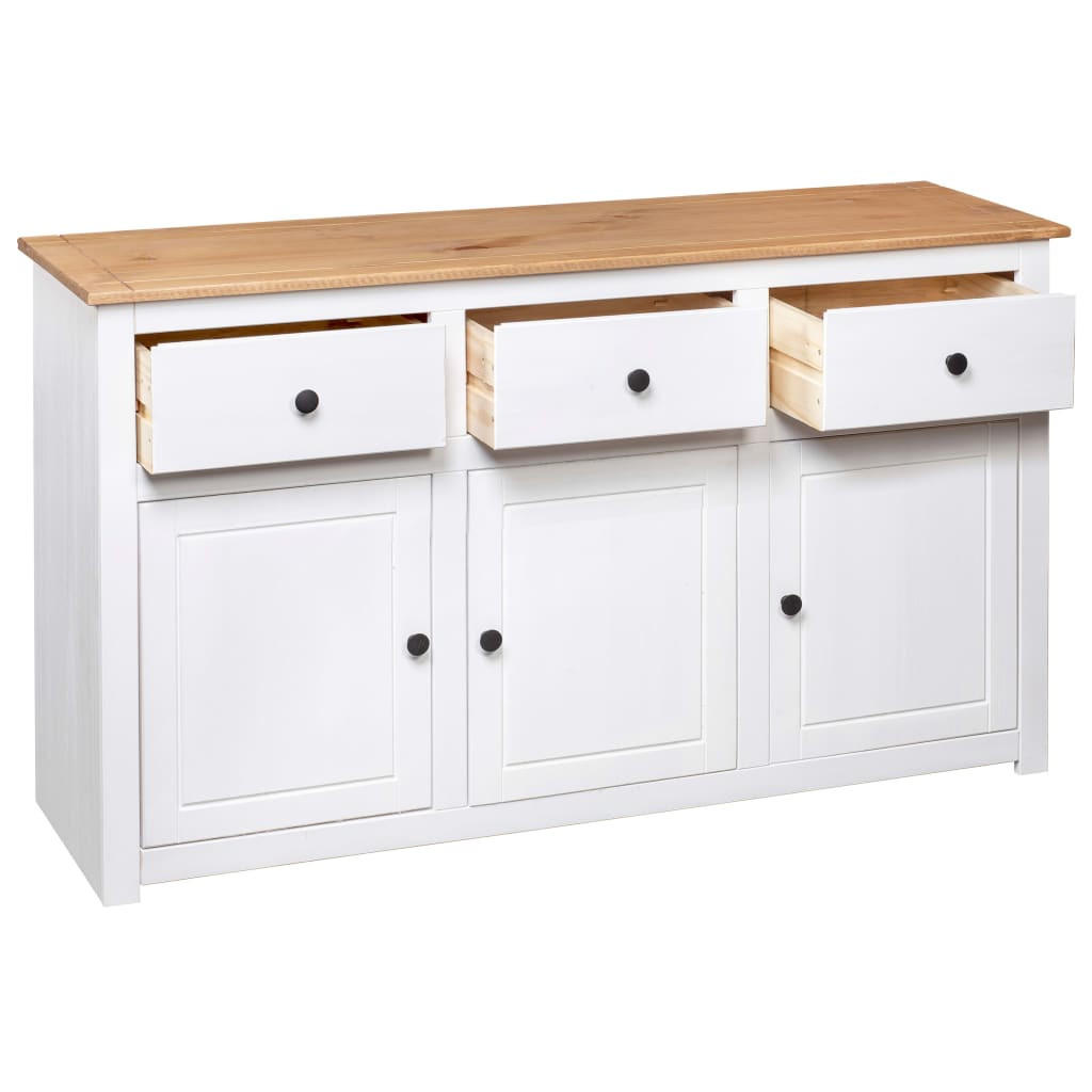 Ez a tömör fenyőfából készült fiókos szekrény rendkívül tartós és robusztus. A szekrény nagy tárolóhelyet kínál 3 fiókkal és 3 rekesszel. Ezenkívül a masszív teteje ideális dekorációs tárgyak, például képkeretek, cserepes növények, vázák stb. elhelyezésére.Száraz ruhával könnyen tisztára törölhető. A tároló könnyen összeszerelhető.