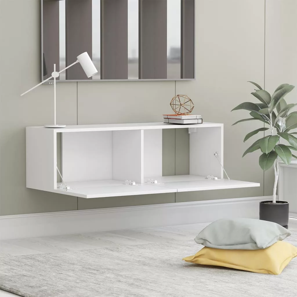 Ez az elegáns TV-szekrény falra rögzíthető, és időálló kiegészítője lesz otthonának. 2 rekesszel lett ellátva, így ideális magazinok, DVD-k és egyéb tárgyak tárolásához. Lenyíló ajtókkal rendelkezik, melyeknek köszönhetően a rekeszek könnyen hozzáférhetők. A TV-állvány egy nedves ronggyal könnyen tisztítható.