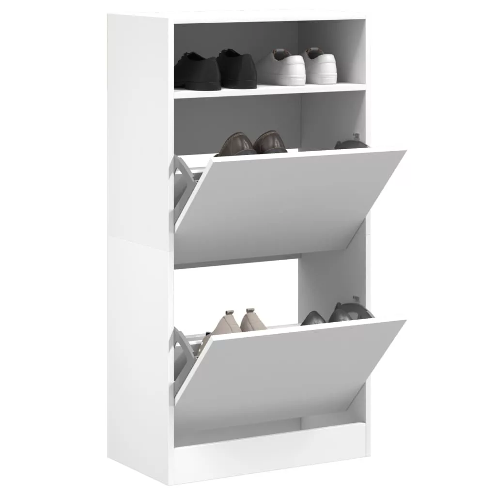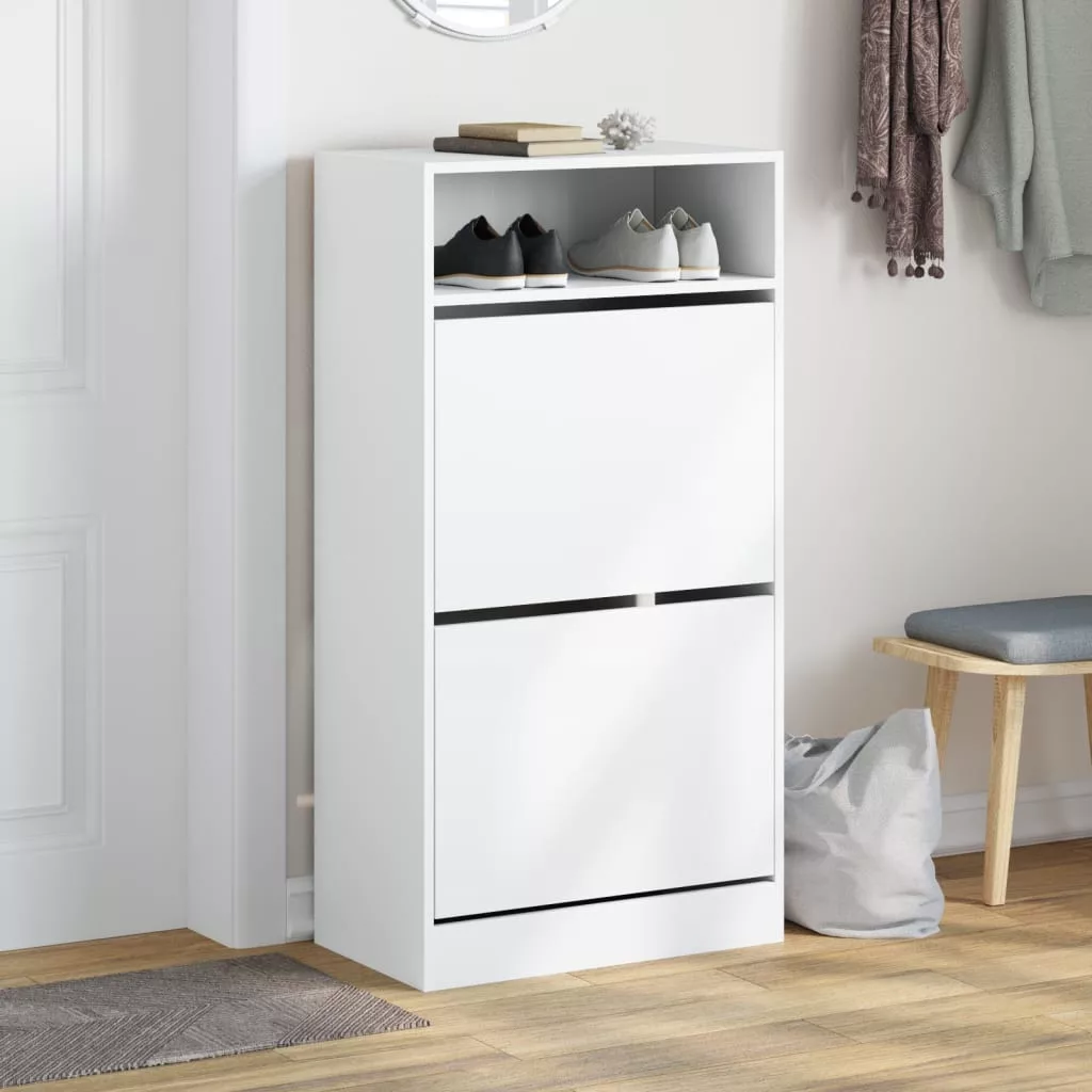 - Bőséges tárolóhely: Ez a cipőtartó 1 polccal és 2 kihajtható fiókkal rendelkezik, melyek elegendő helyet biztosítanak a cipők kéznél tartásához és rendezett tárolásához.