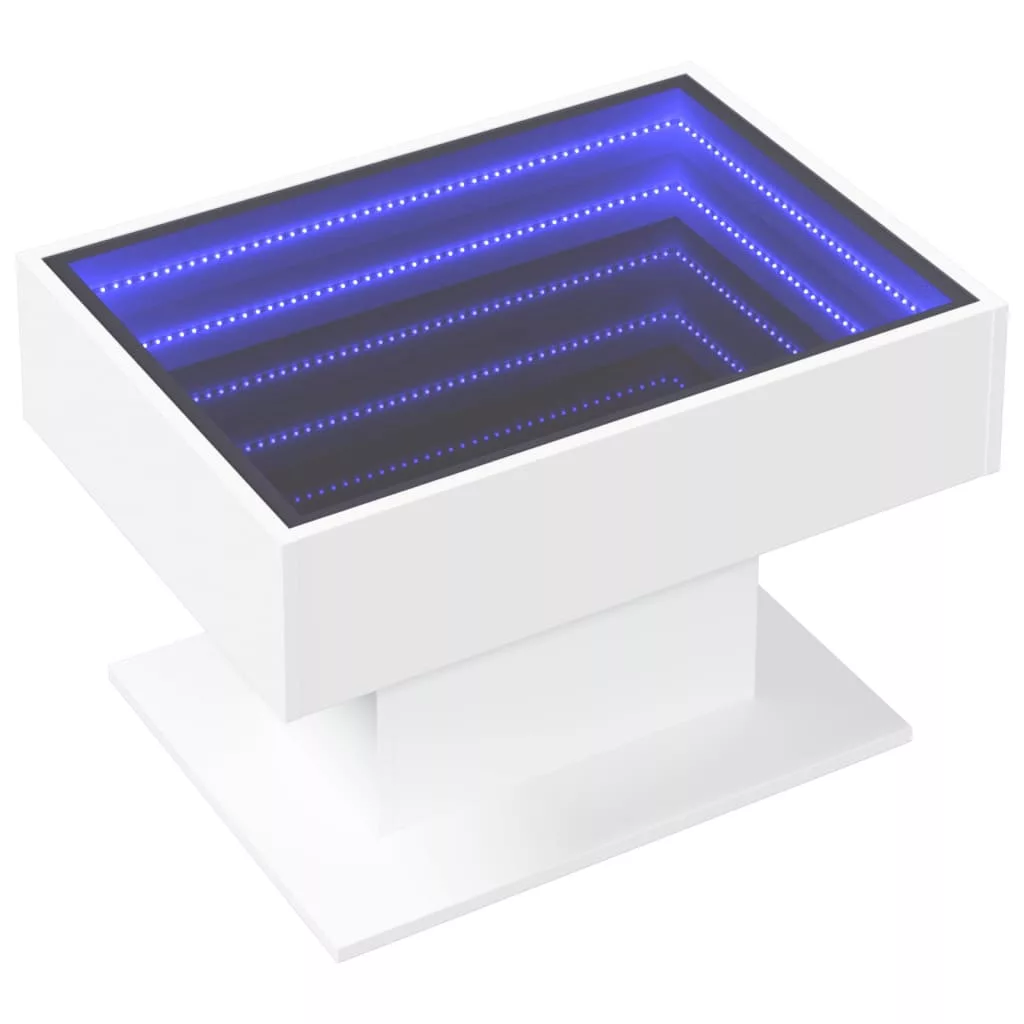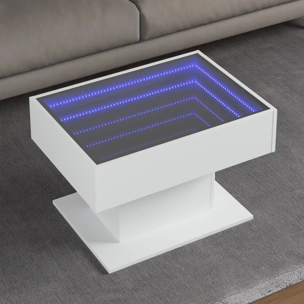 Az egyedi LED-es dohányzóasztal végtelen hatású tükör asztallappal különböző helyekre alkalmas. Ez az asztal nem hiányozhat az otthonából.