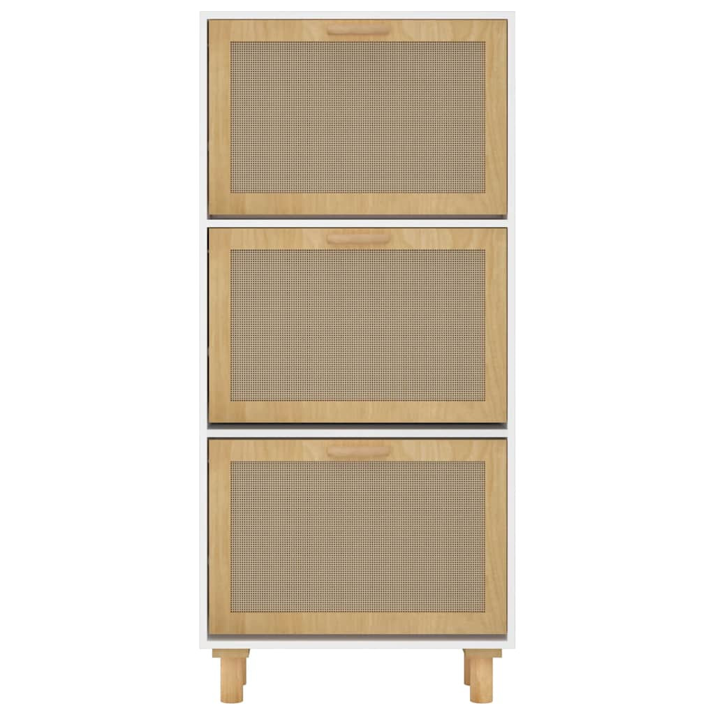 vidaXL fehér szerelt fa és természetes rattan cipőszekrény 52x25x115cm