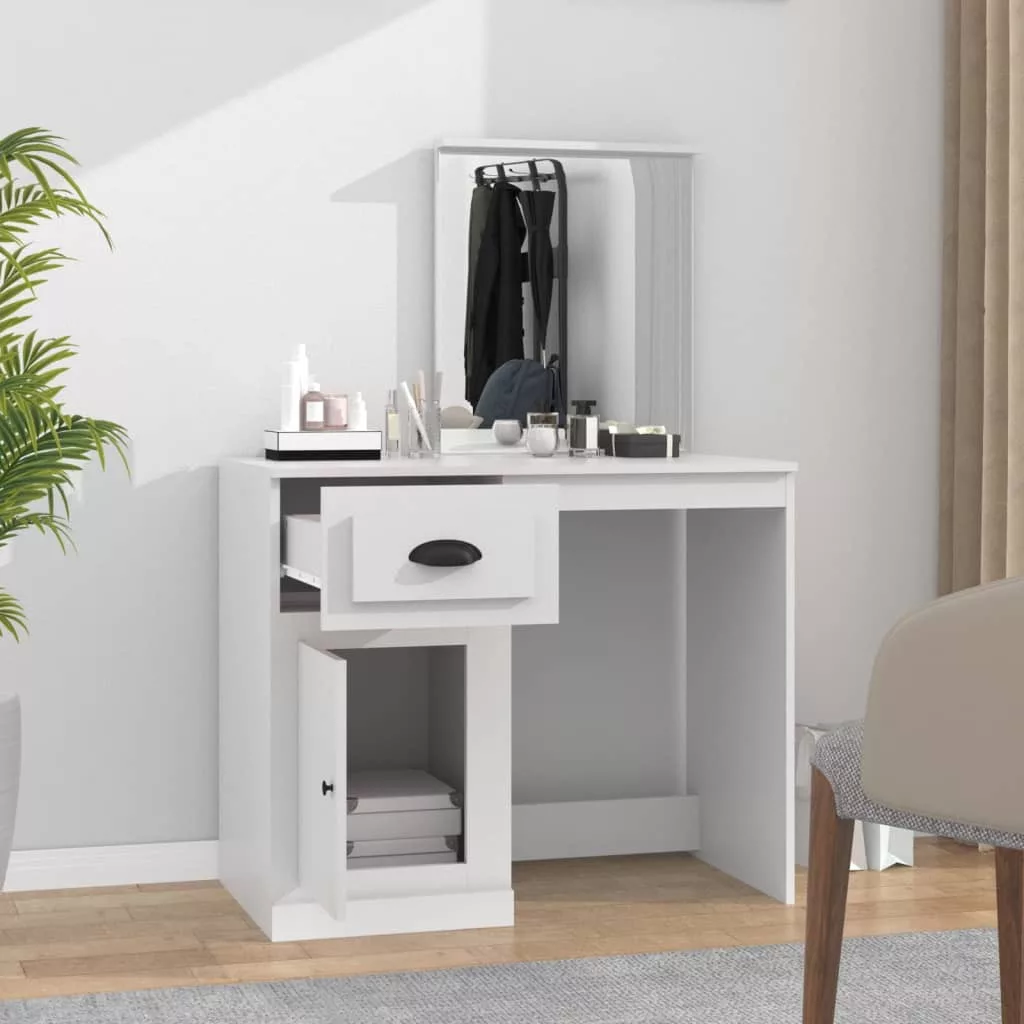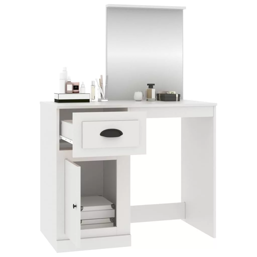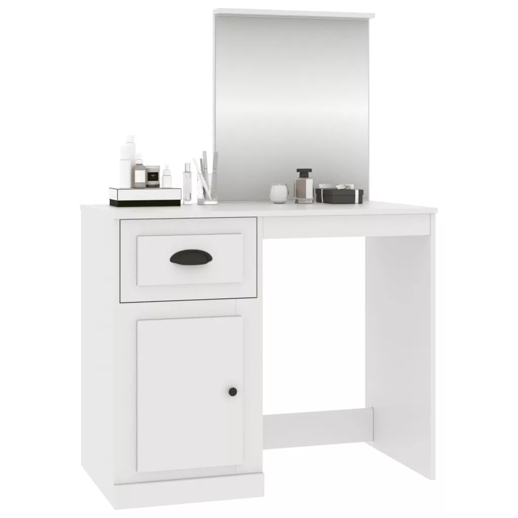vidaXL fehér szerelt fa fésülködő asztal tükörrel 90x50x132,5 cm