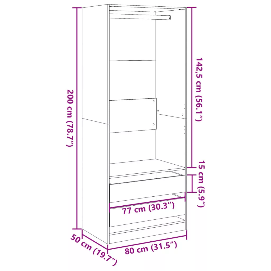 - Mérete: 80 x 50 x 200 cm (Szé x Mé x Ma)