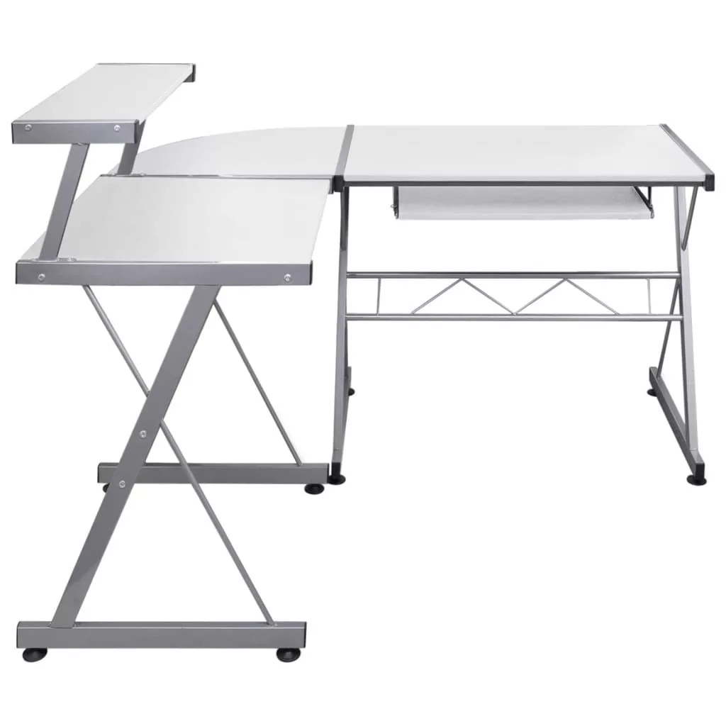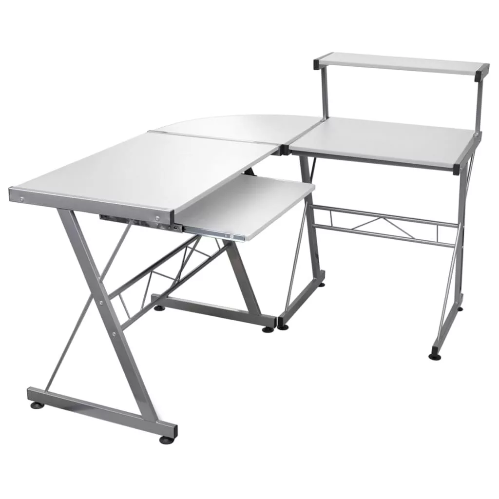 - Praktikus sarokasztal: Az L-alakú íróasztal tágas munkaállomást biztosít, és tartalmaz egy csúsztatható billentyűzettálcát is, hogy az asztal minél szabadabb és tisztább maradjon.