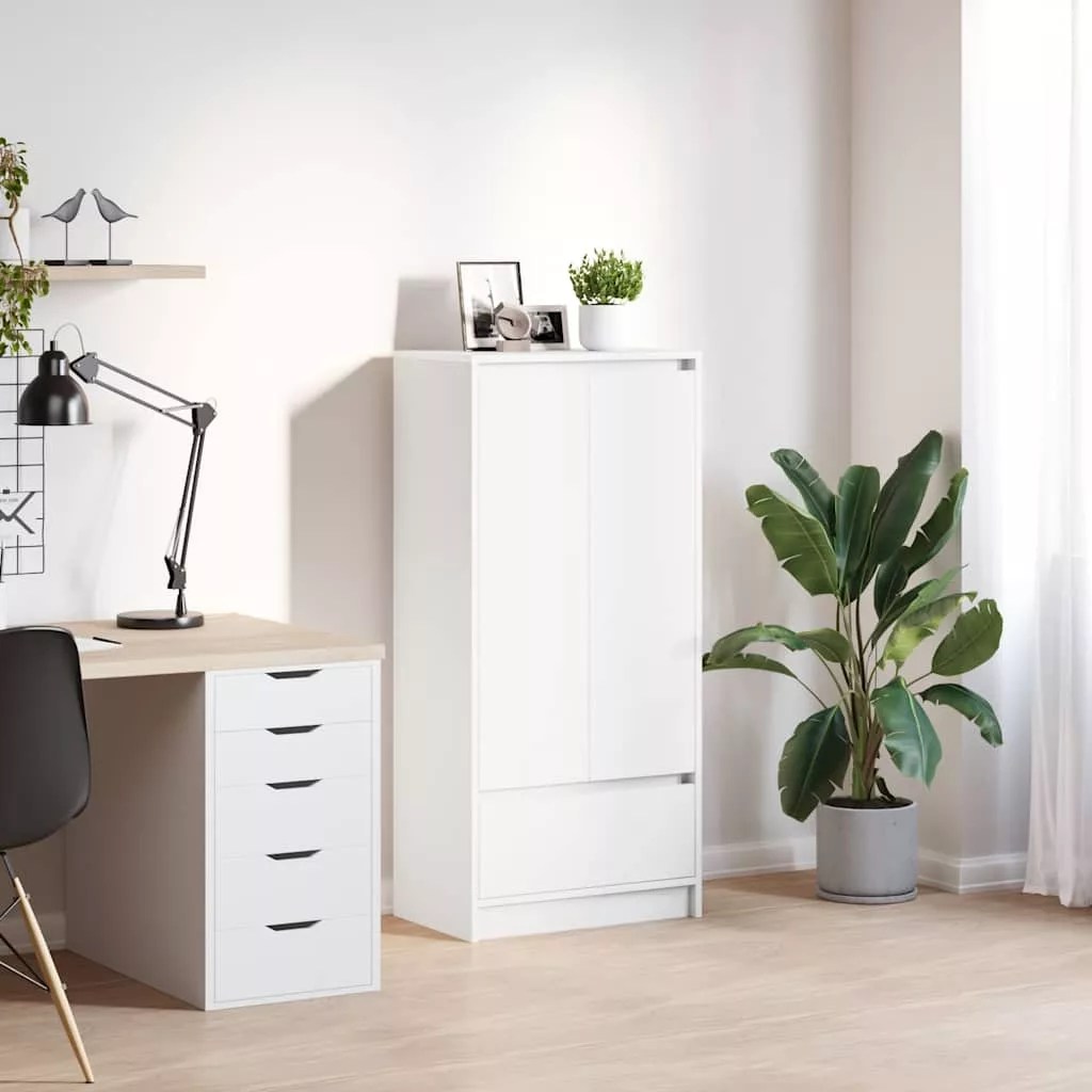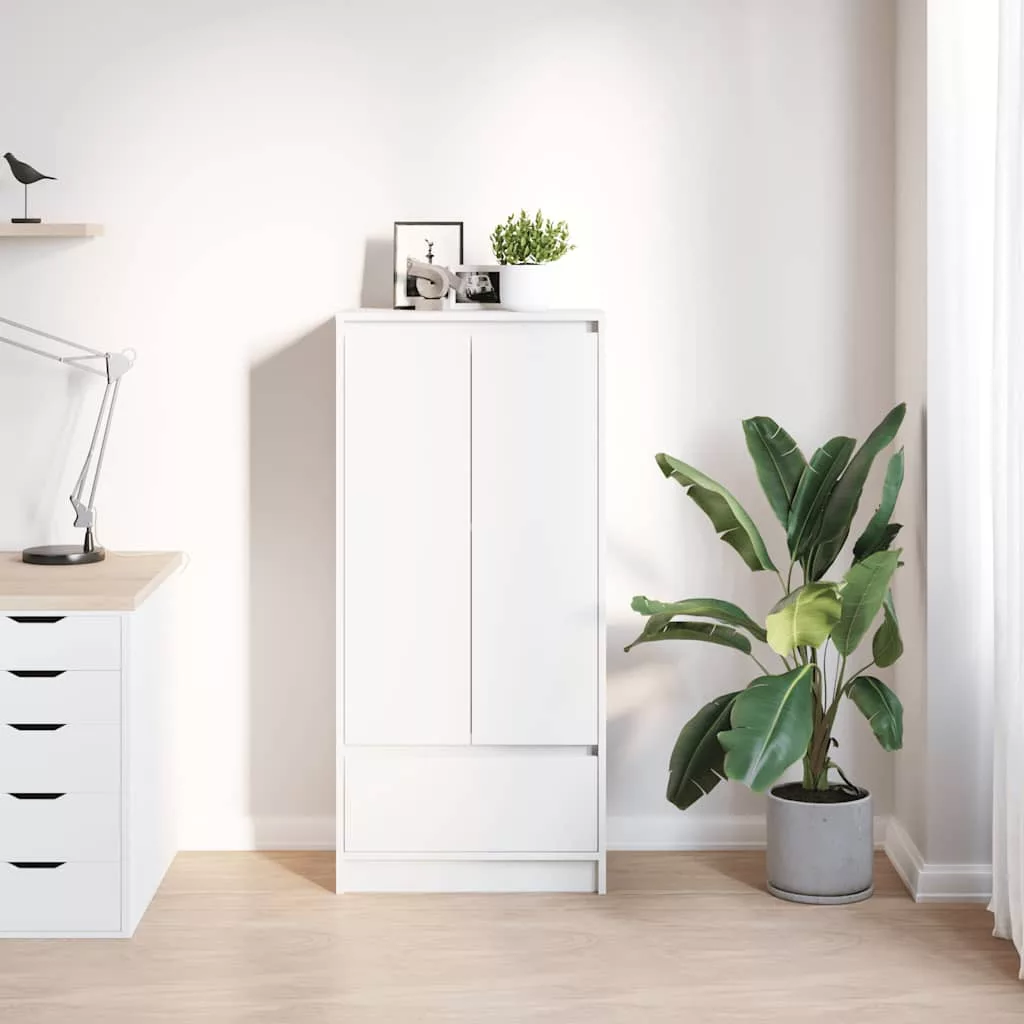 - Bőséges tárolóhely: A szekrény ajtókkal, egy polccal és egy fiókkal rendelkezik, így biztosítva, hogy a tárgyak jól szervezettek és rendezettek maradjanak. A belső polc segít a tárgyak osztályozásában, fokozva a szervezettséget és a tisztaságot, míg az alsó fiók további helyet biztosít a különböző tárgyak tárolásához.