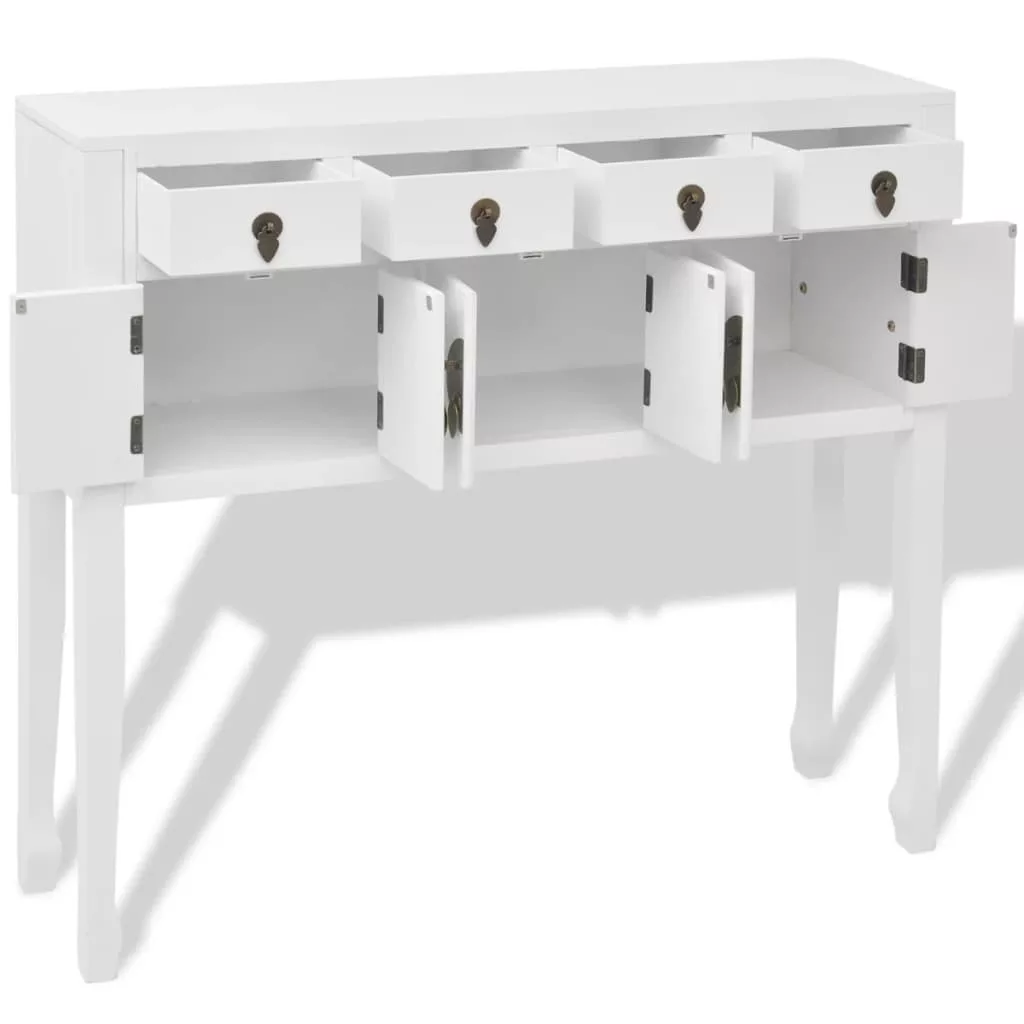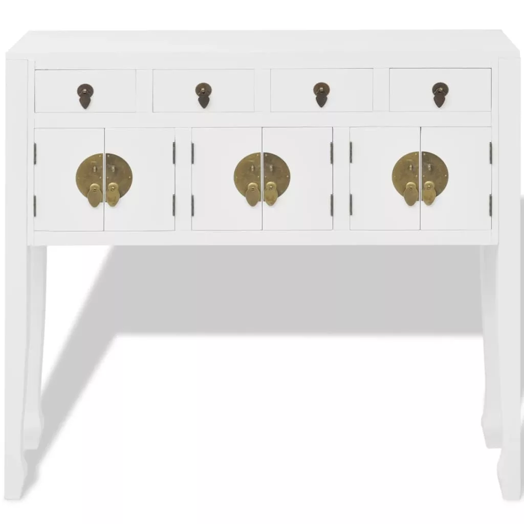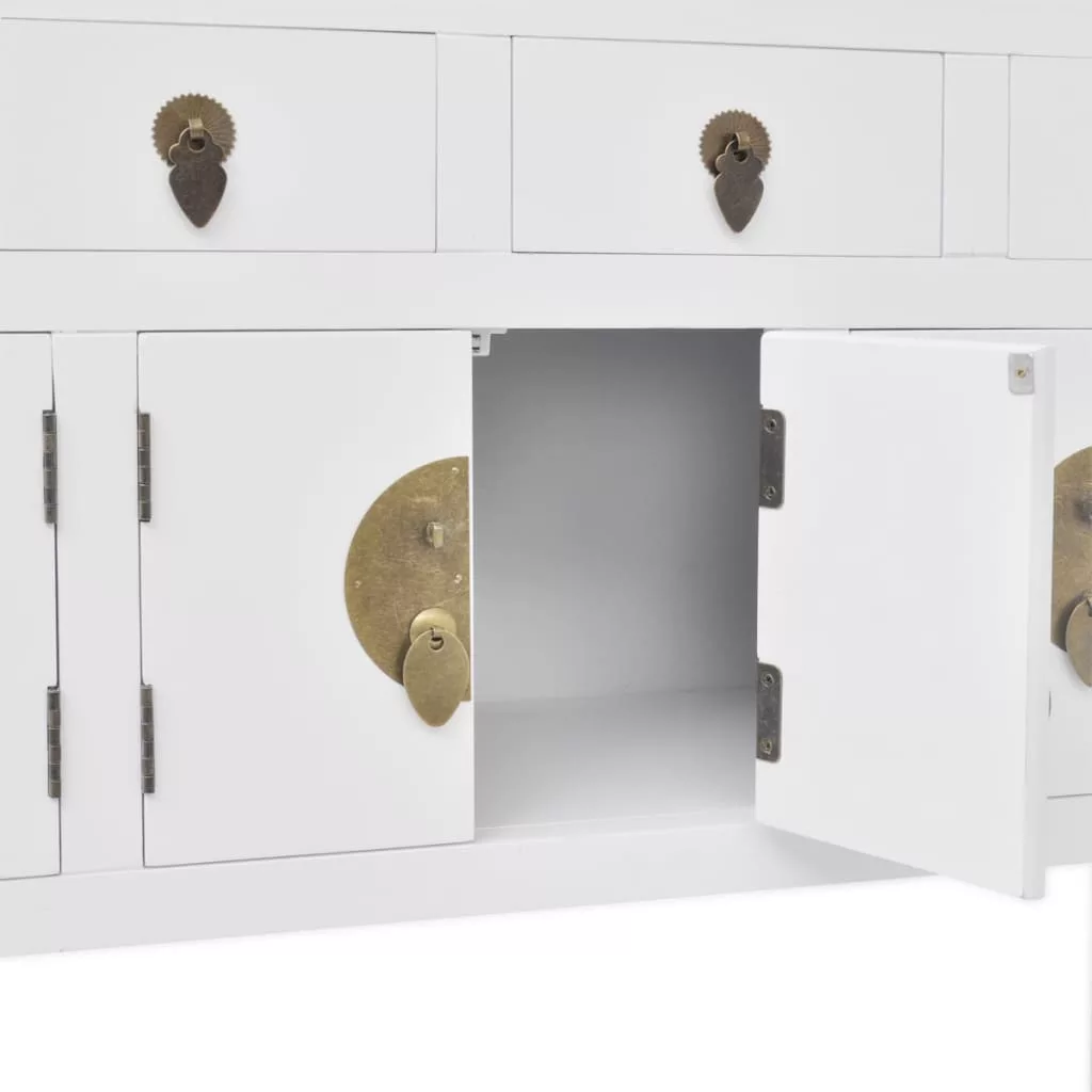 Kiváló minőségű tömör fából készült fehér festéssel, ez a tálalószekrény rendkívül tartós.