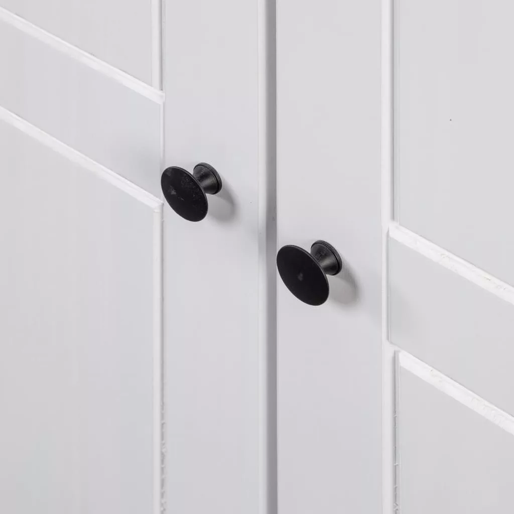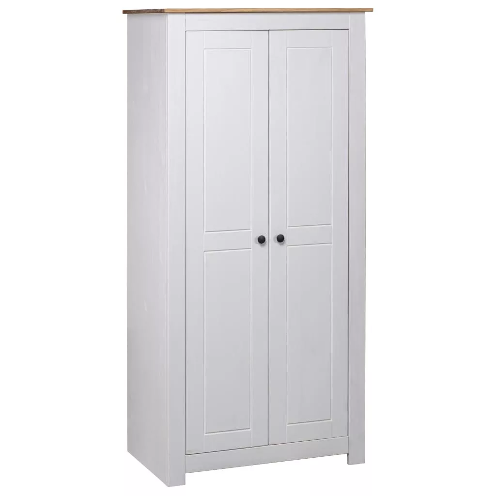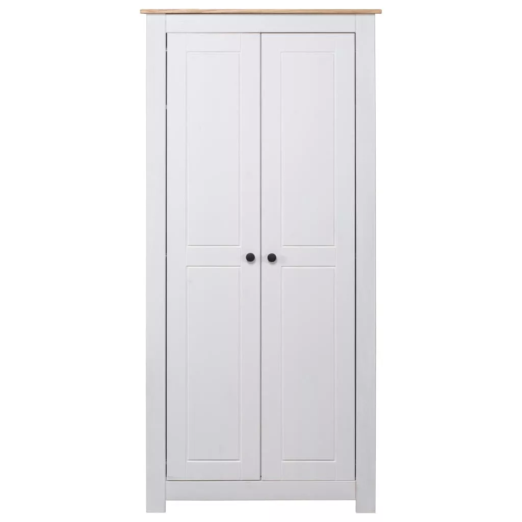 A ruhásszekrényben rögzített polc található cipők, pulóverek, farmerek, sapkák, kézitáskák stb. tárolására és rendszerezésére. A nagy rekesz akasztóval lett felszerelve, így kabátok, ruhák stb. akasztására használhatja. A tömör fenyőfából készült gardrób masszív és hosszú távú használatot biztosít.
