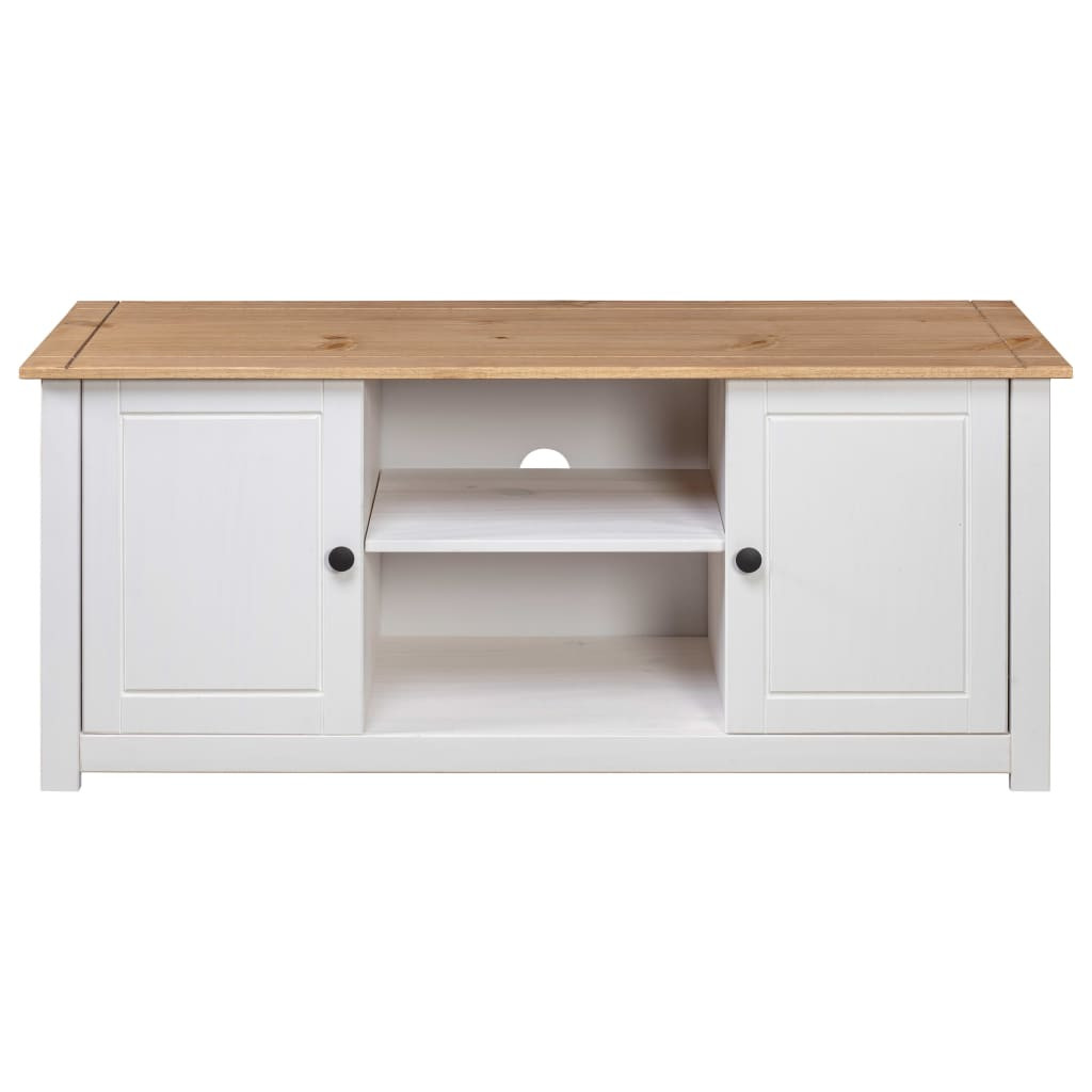 Ez a tömör fenyőfából készült TV-állvány rendkívül erős és tartós. Elegáns kialakításának köszönhetően a komód felhasználóbarát és rendkívül otthona dekoratív kiegészítője lesz. A sztereó szekrény 2 ajtóval és 2 rekesszel rendelkezik, amelyek elegendő helyet biztosítanak mindenféle kisebb tárgy, például kulcsok, jegyzettömbök, tollak és egyéb apróságok rendezetten és elérhető közelségben való tartásához. Ezenkívül a nagy felső része ideális TV, router, multimédiás készülékek elhelyezésére vagy dísztárgyak megjelenítésére.