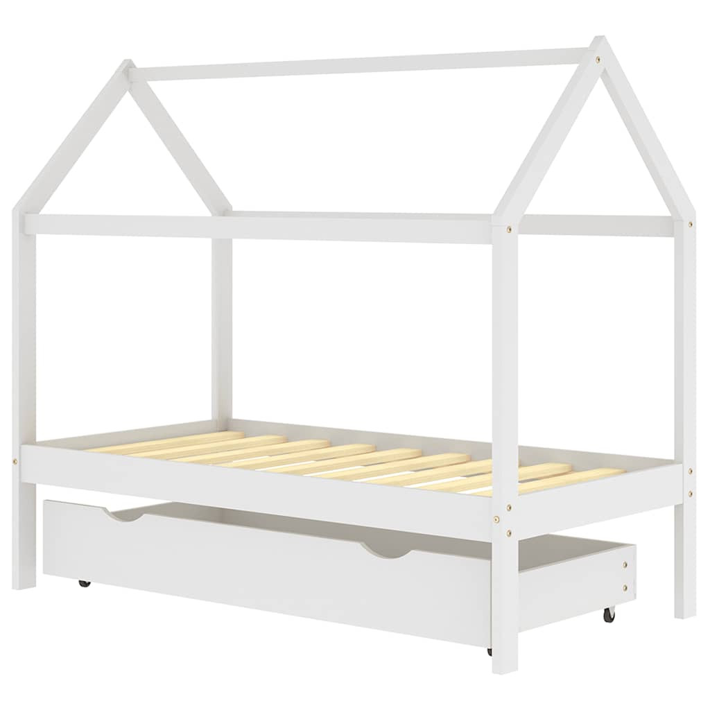 Az ágy okosan megtervezett, faház stílusú kerettel rendelkezik, ahová ágyfüggönyöket akaszthat, hogy magánéletet teremtsen gyermeke számára. Olvasókönyvként vagy játszóházként is használható. Tömör fenyőfából készült, ez az ágykeret rendkívül masszív és tartós. Az erős lécek biztosítják a szükséges tartást és nagyon kényelmesek. A mellékelt, 2 fogantyúval ellátott ágyfiók bőséges tárolóhelyet biztosít összehajtott ruhák, játékok stb. tárolására, így a szoba tiszta és rendezett marad. A könnyen gördülő kerekek szőnyegpadlón és fa padlón is gördülnek. Ez az ágykeret 80 x 160 cm-es matrachoz alkalmas.