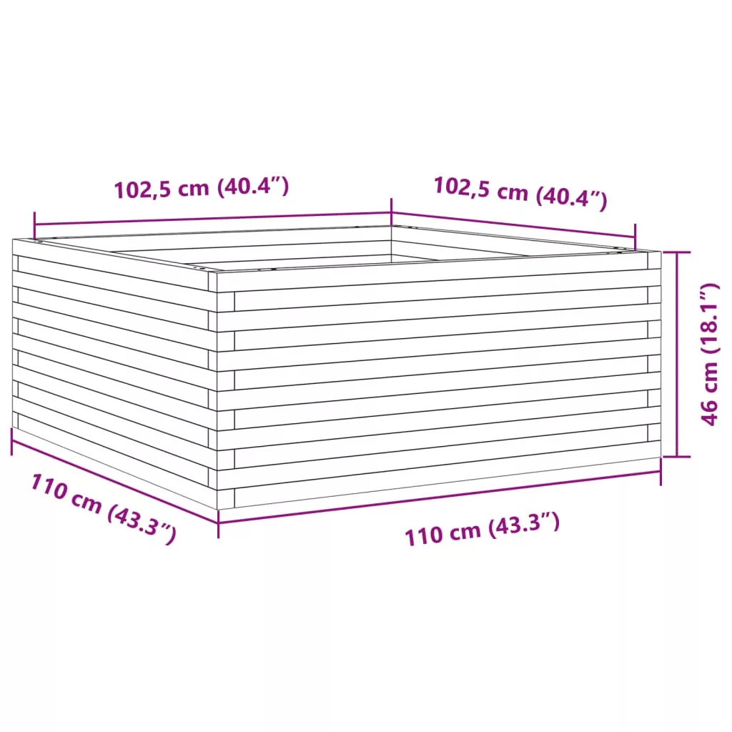 - Belső mérete: 102,5 x 102,5 x 46 cm (Szé x Mé x Ma)