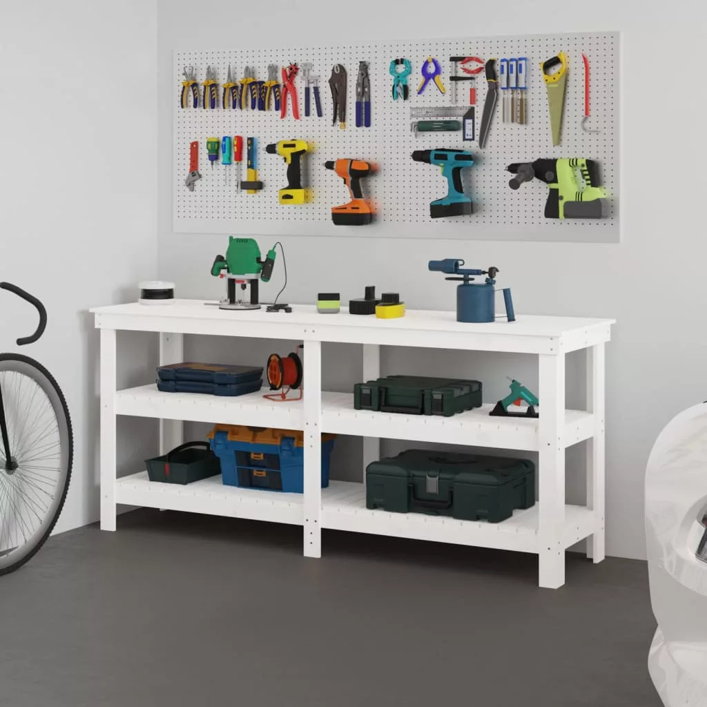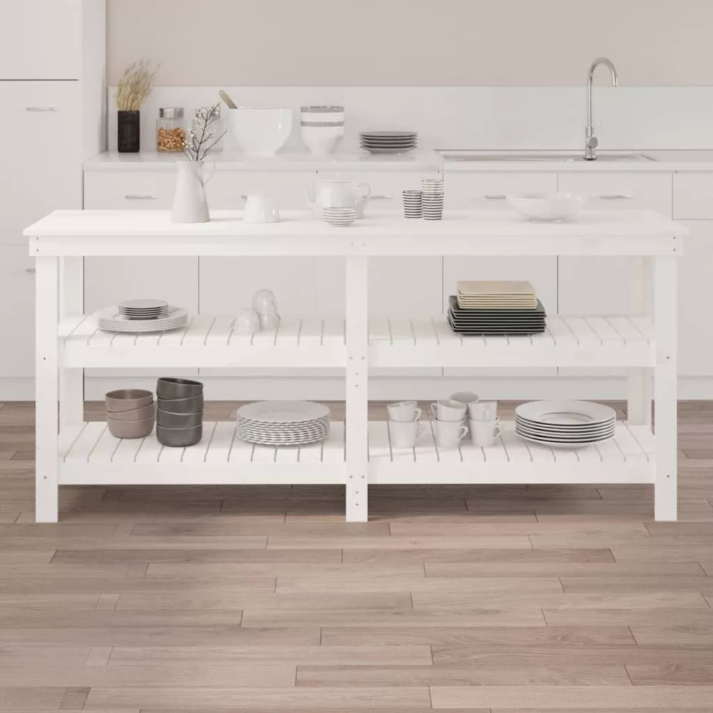 vidaXL fehér tömör fenyőfa munkapad 181 x 50 x 80 cm