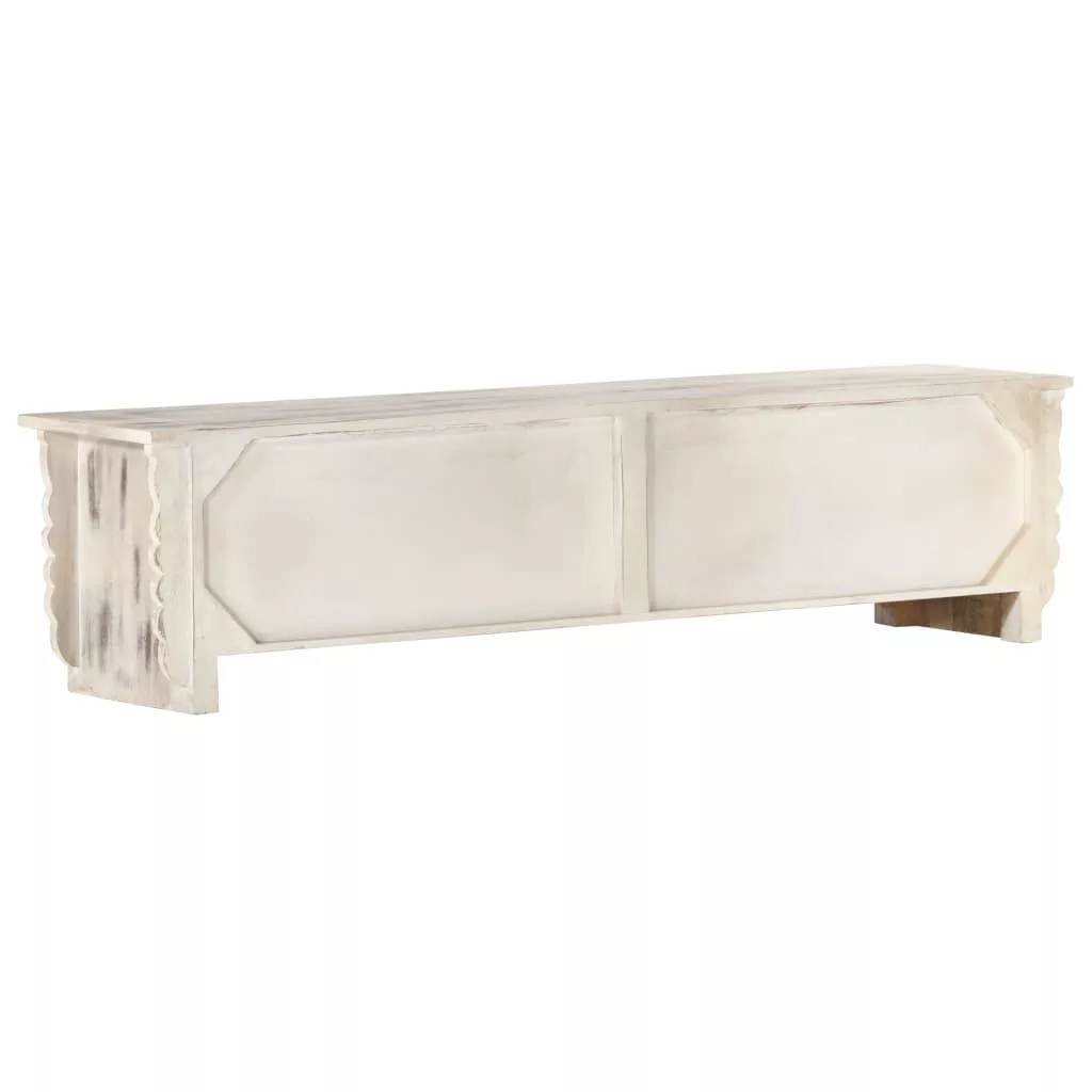 Ez a TV-állvány tömör mangófából készült, és gyönyörű mosott fehér felülettel rendelkezik. A kivitelezés minden lépését a legnagyobb gondossággal jellemzi, legyen az a polírozás, a festés vagy a lakkozás. Ez a 4 ajtóval ellátott szekrény bőséges helyet biztosít multimédiás készülékei, könyvei és számos egyéb tárgy tárolására.