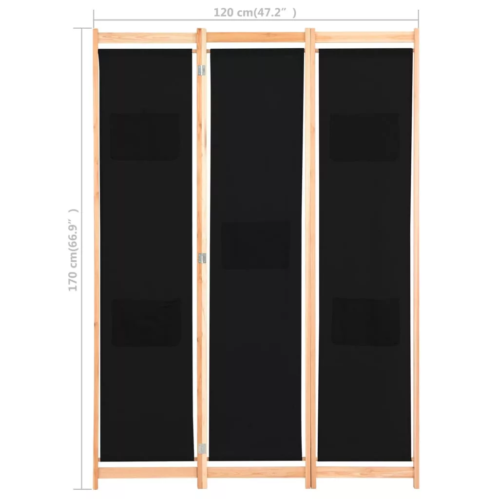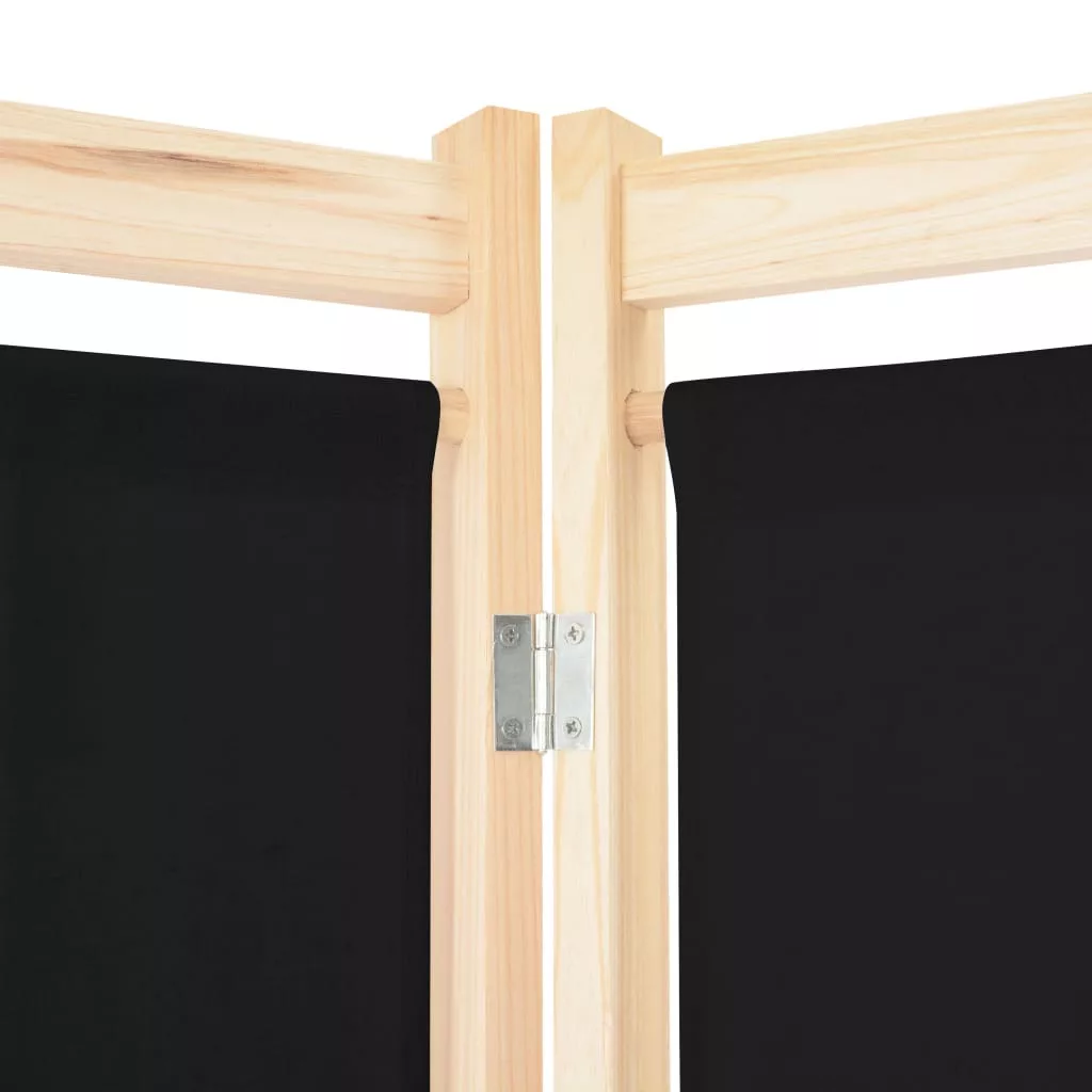 A paraván váza fából készült, a takarópanelek pedig szövetből. Használaton kívül egyszerűen összecsukható.