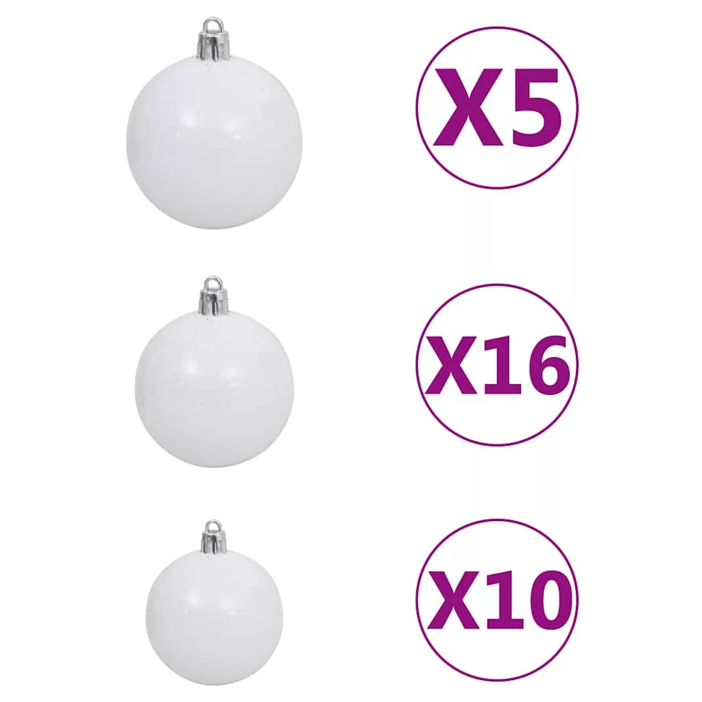Ez a gyönyörű, PVC-ből készült karácsonyfa alakjában és megjelenésében is nagyon élethű. Az acéllábak tovább növelik a stabilitását. A karácsonyfa minden évben újra használható, így nagyon gazdaságos választás egy valódi fához képest. Az energiahatékony LED világításnak köszönhetően csodálatos fényeket és otthonos ünnepi hangulatot teremt. Sőt, a gyönyörű csúcsokkal és gömbökkel díszített karácsonyfa szemet gyönyörködtető lesz otthonában.