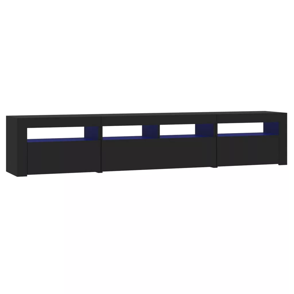 - Színes LED-világítás: A TV-állvány RGB LED-világítással lett ellátva, amely különféle menükkel rendelkezik a fény színének változtatására, vagy beállítható a szín automatikus váltakozása. A LED-világítás kiemeli a szekrény modern kialakítását, és fokozza divatos hangulatát.