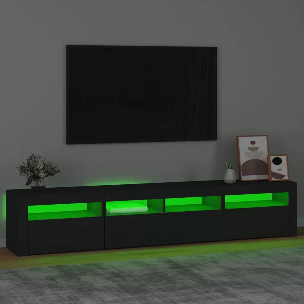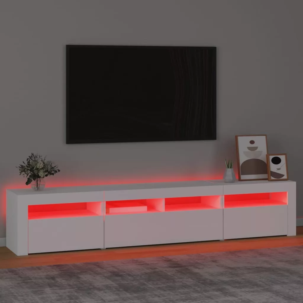 Ez a stílusos, mégis praktikus kialakítású LED-lámpákkal ellátott TV-szekrény minden bizonnyal szobája középpontjává fog válni.