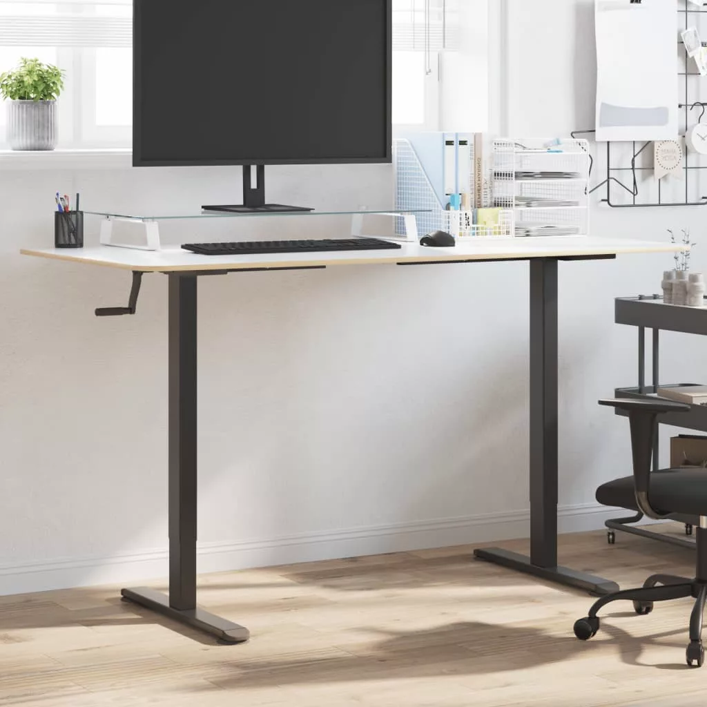 - Állítható kialakítás: Az asztallábak forgatható fogantyúval lettek kialakítva, így kényelmesen beállíthatja a magasságot. Ezenkívül az állóasztal-emelő hossza állítható, hogy támogassa a különböző méretű asztali számítógépeket.
